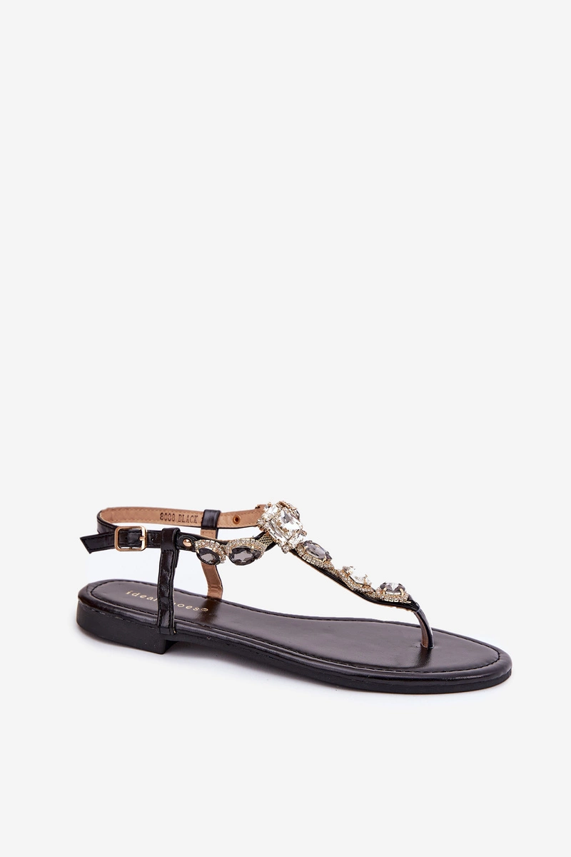Sandały Damskie Na Płaskim Obcasie Z Kryształkami Czarne Fiolalia