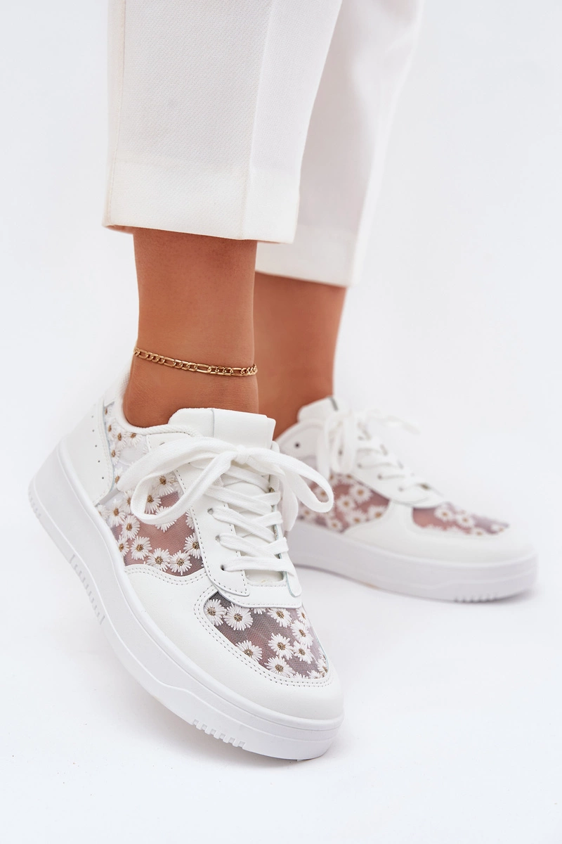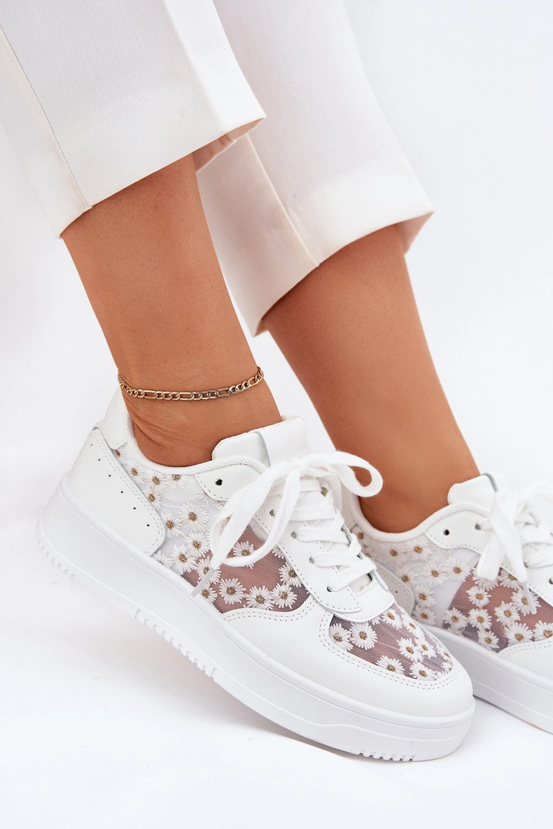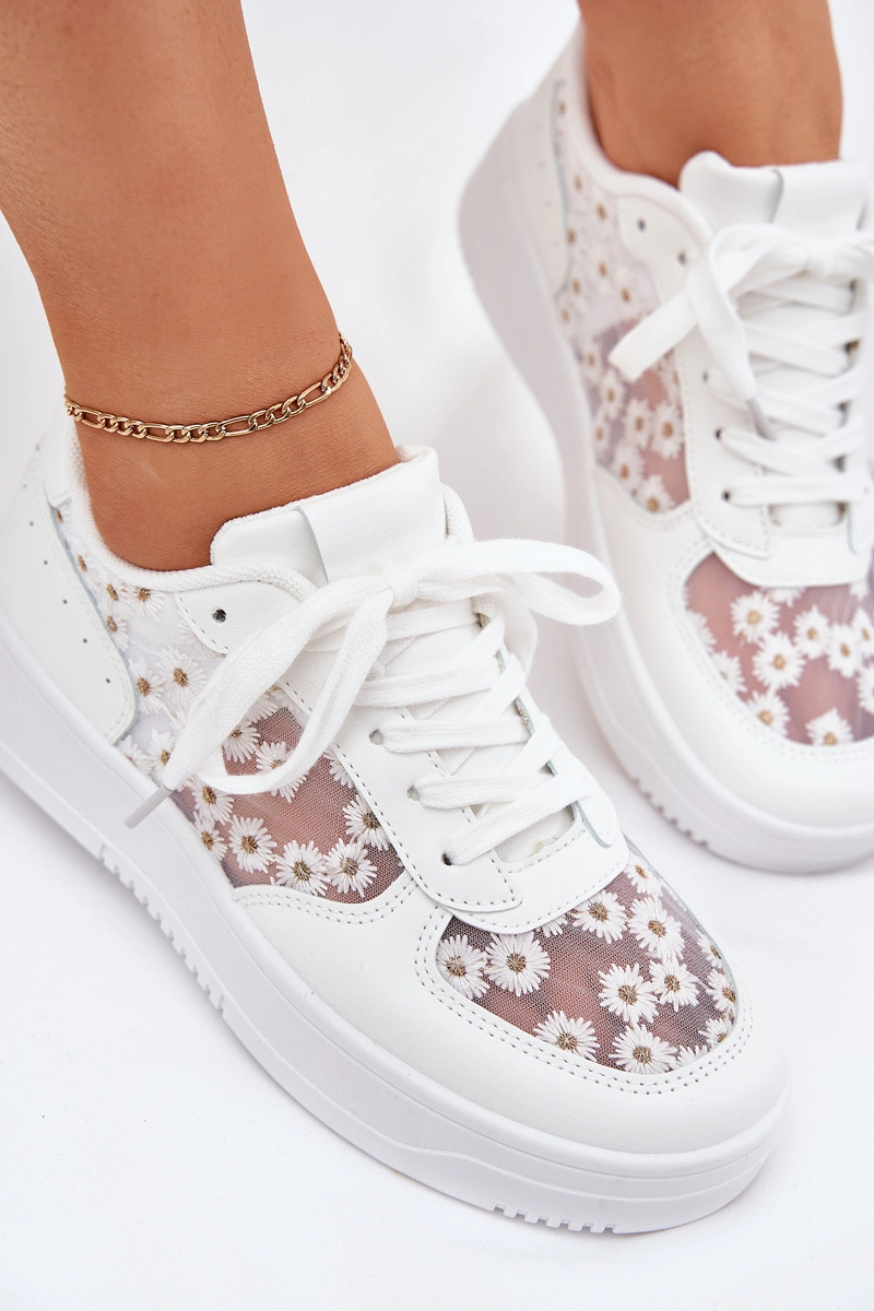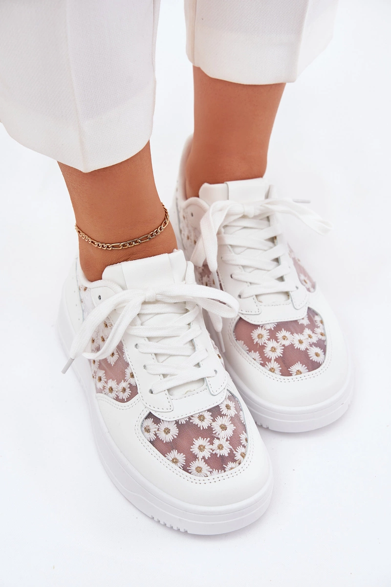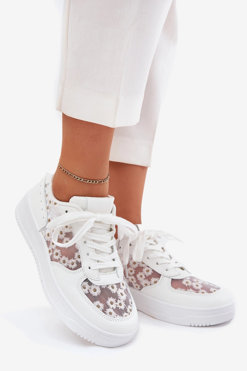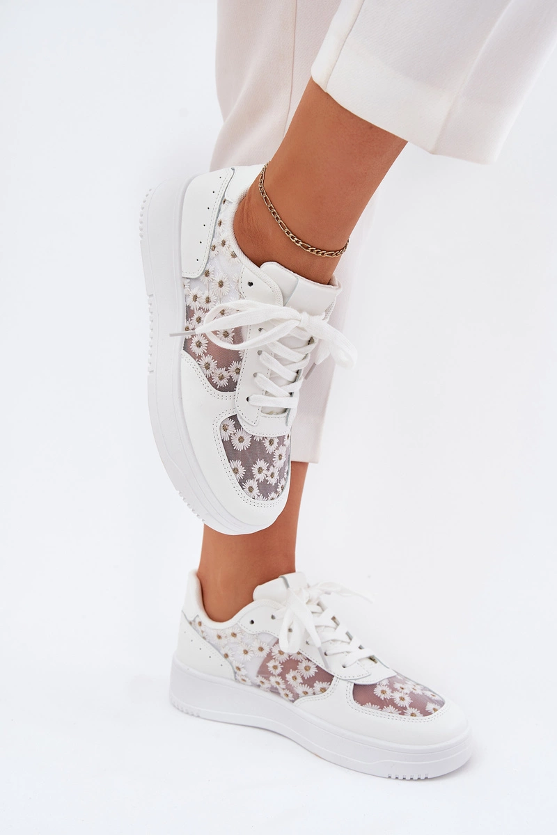 Siateczkowe Sneakersy Damskie Stokrotki Białe Jenithra