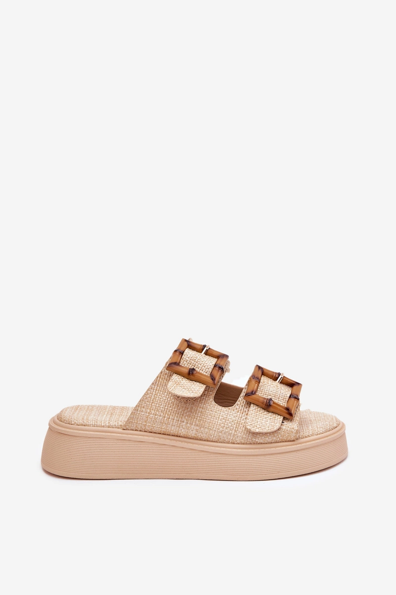 Klapki Damskie Na Platformie Z Klamrami Beżowe Xanivia