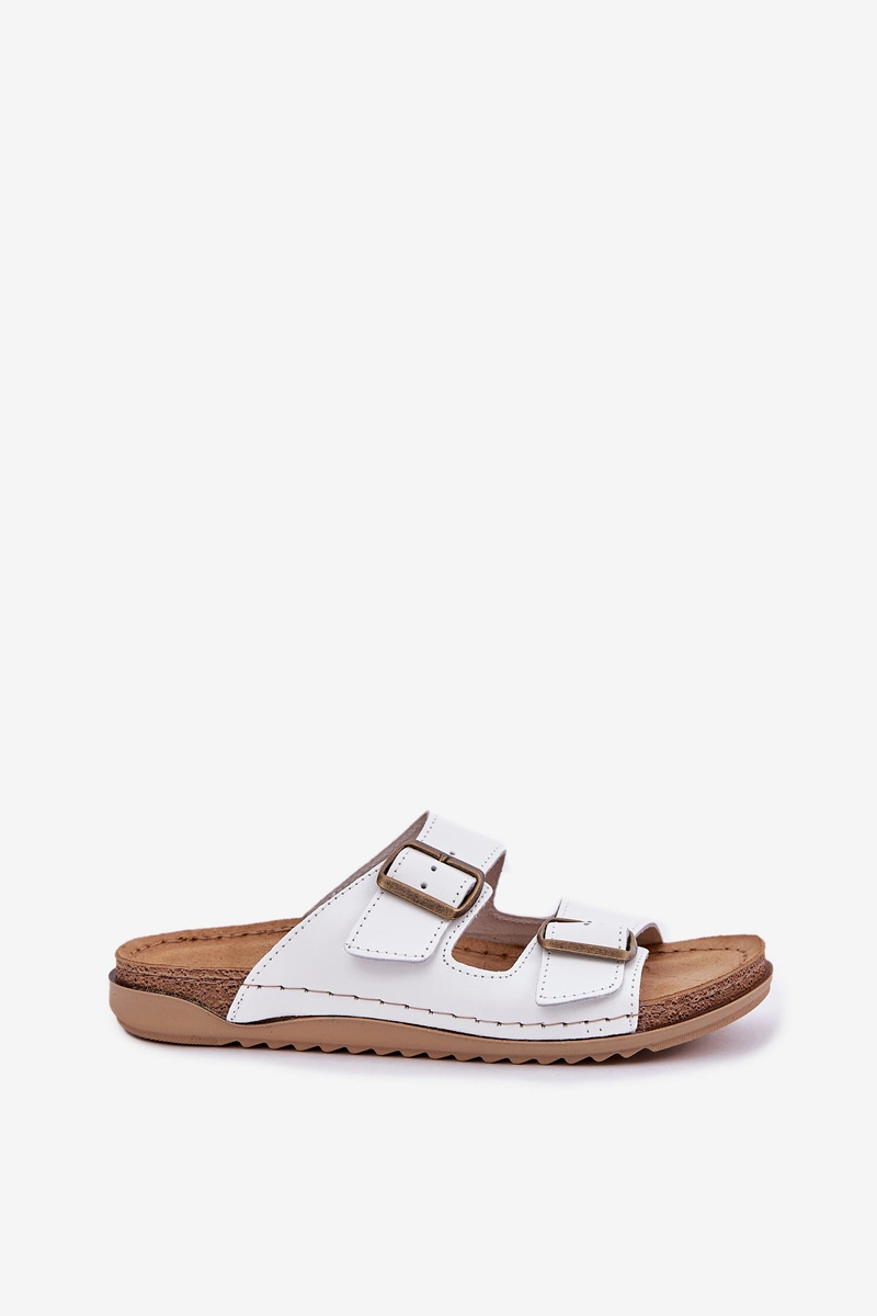 Skórzane Klapki Damskie Z Klarami Inblu AA0002KU Białe