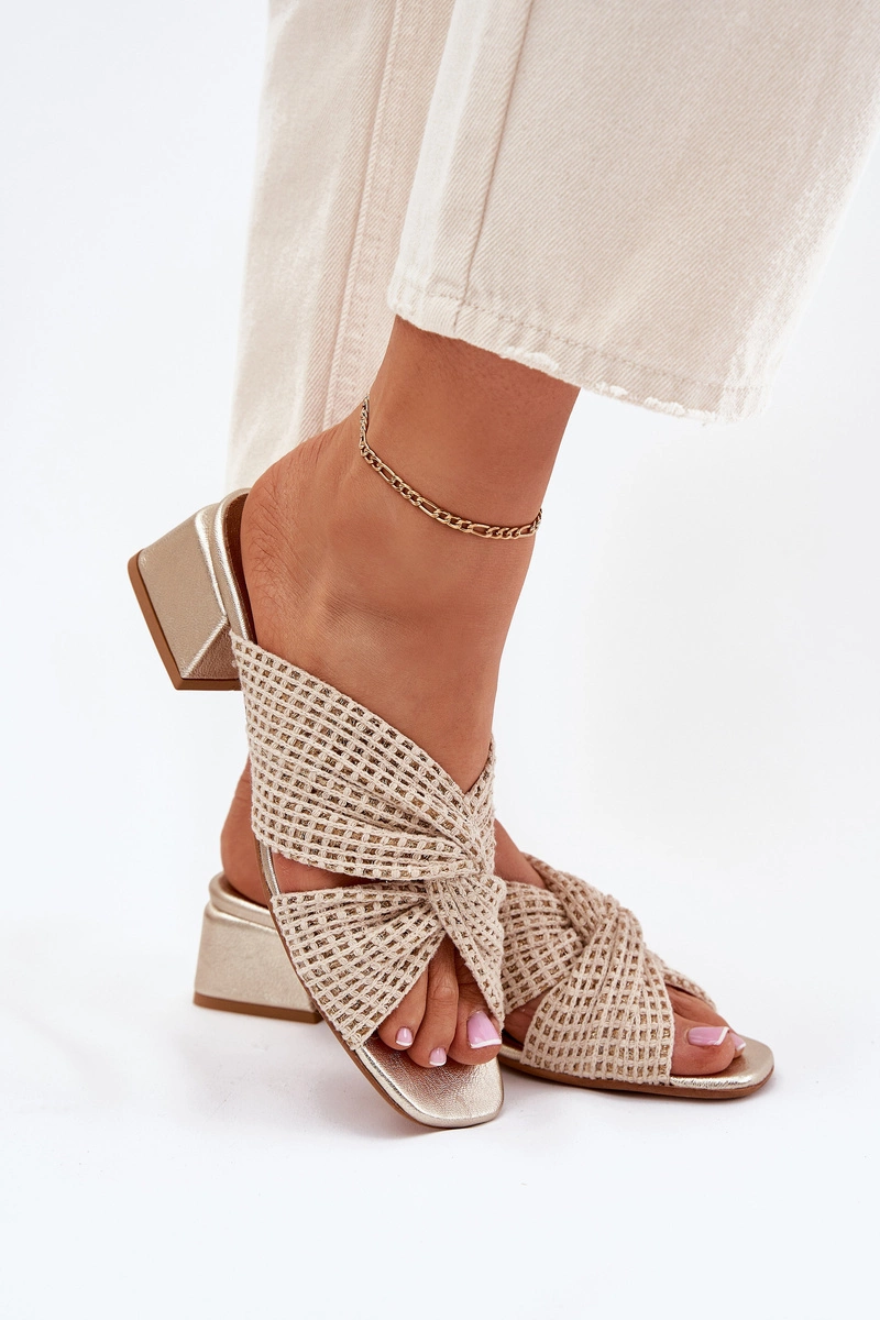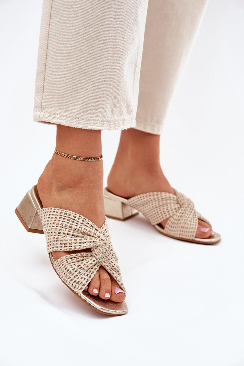 Klapki Damskie Na Klocku Maciejka 06955-25 Beżowo-Złote