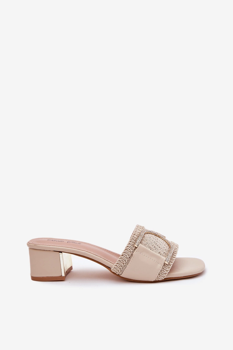 Damskie Klapki Na Obcasie Z Ozdobnym Detalem Beżowe Julinemi
