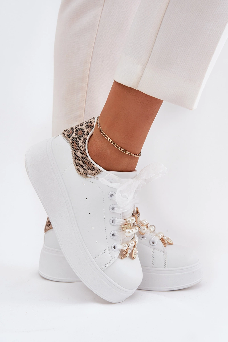 Sneakersy Damskie Na Platformie Z Przypinkami Białe Panterka Ocerdia