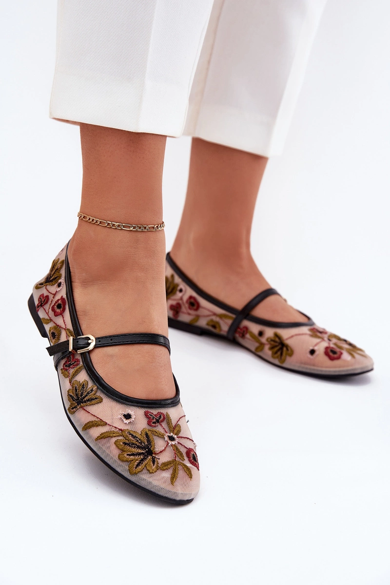 Baleriny Z Haftem I Paskiem Czarne Lilindraen