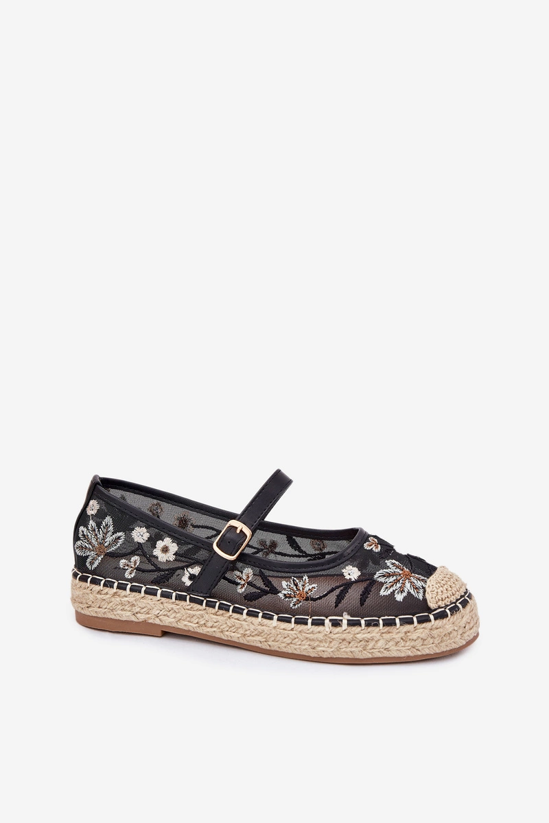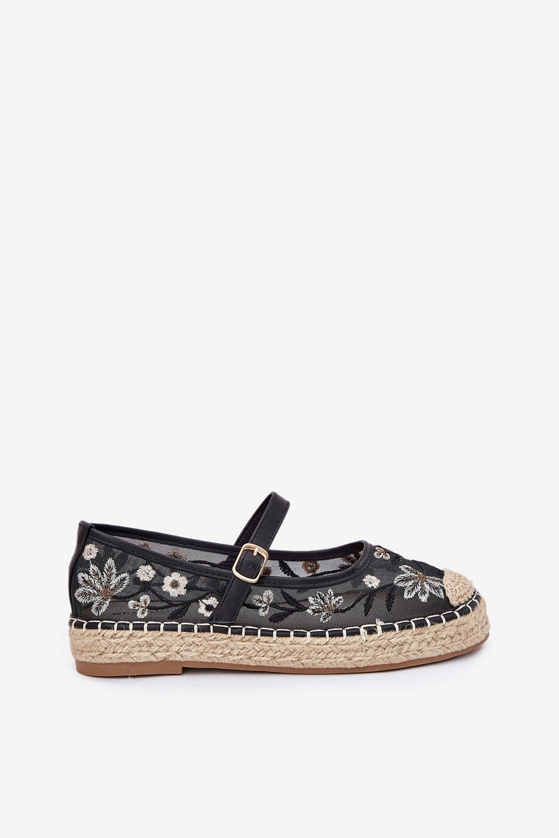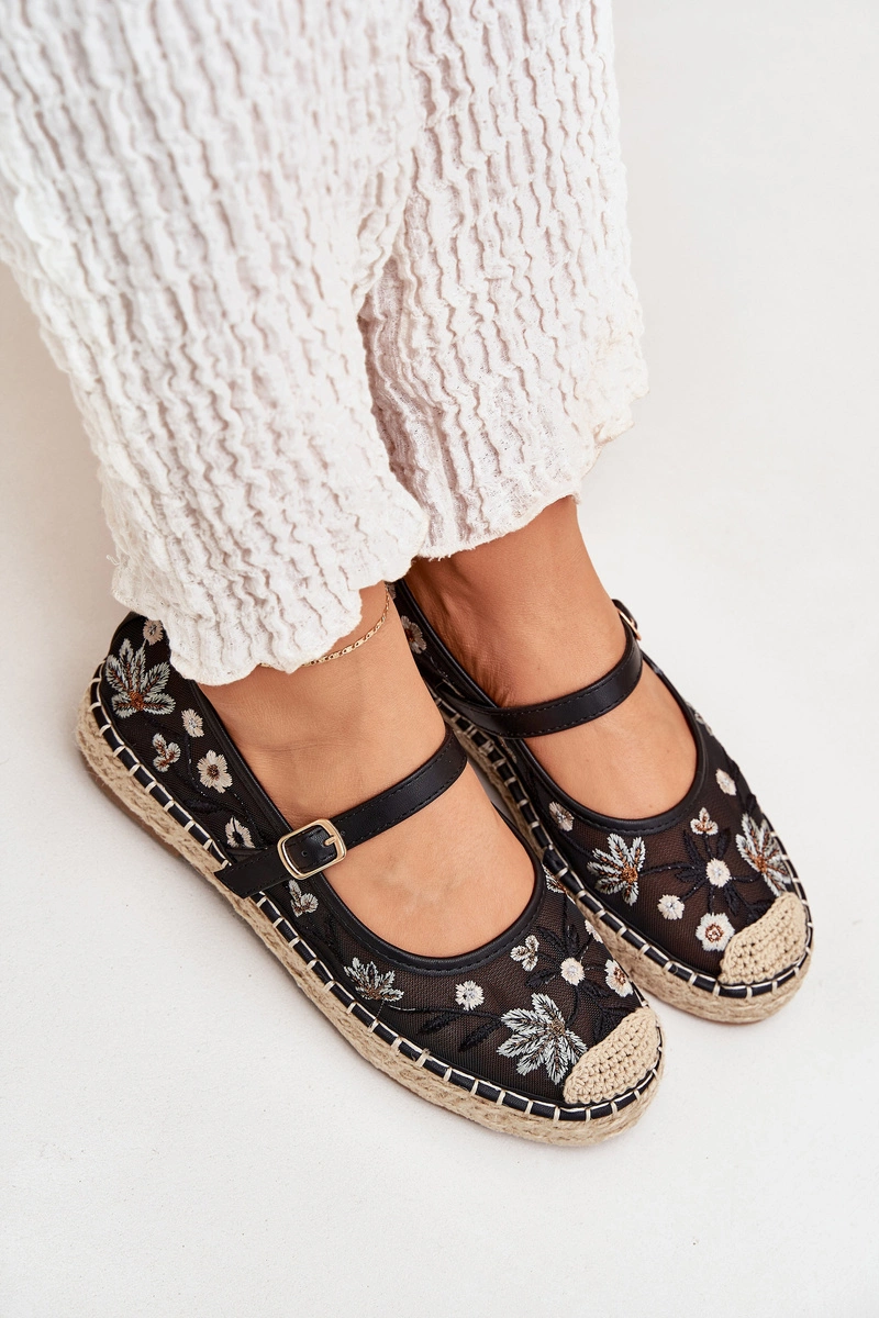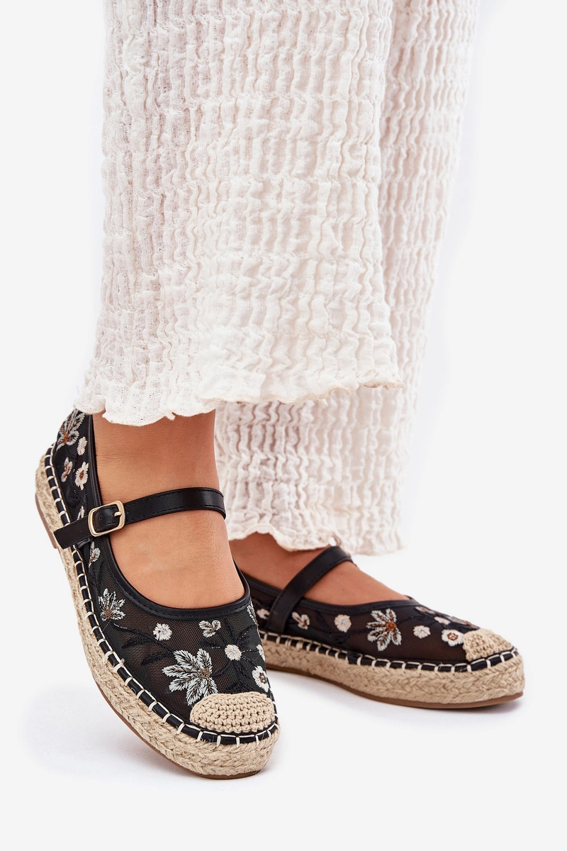 Siateczkowe Espadryle Z Haftem Na Platformie Czarne Laxisa