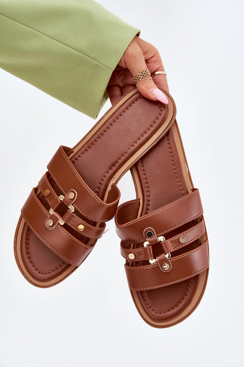 Płaskie Klapki Damskie Ze Złotym Detalem Camel Noroti