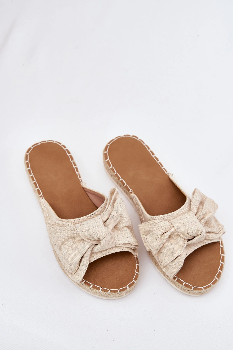 Klapki Damskie Na Platformie Z Plecionką I Kokardką Beżowe Alpireda