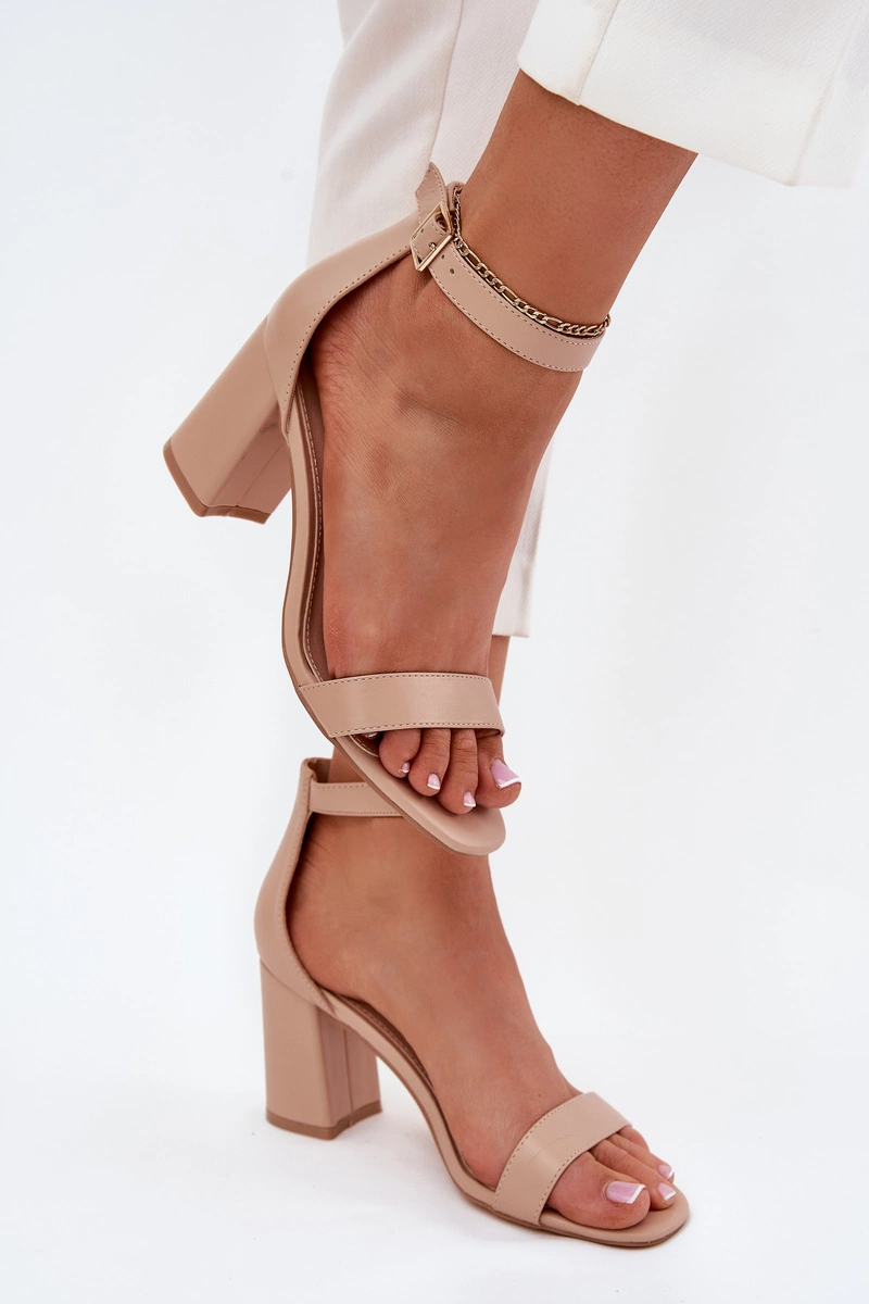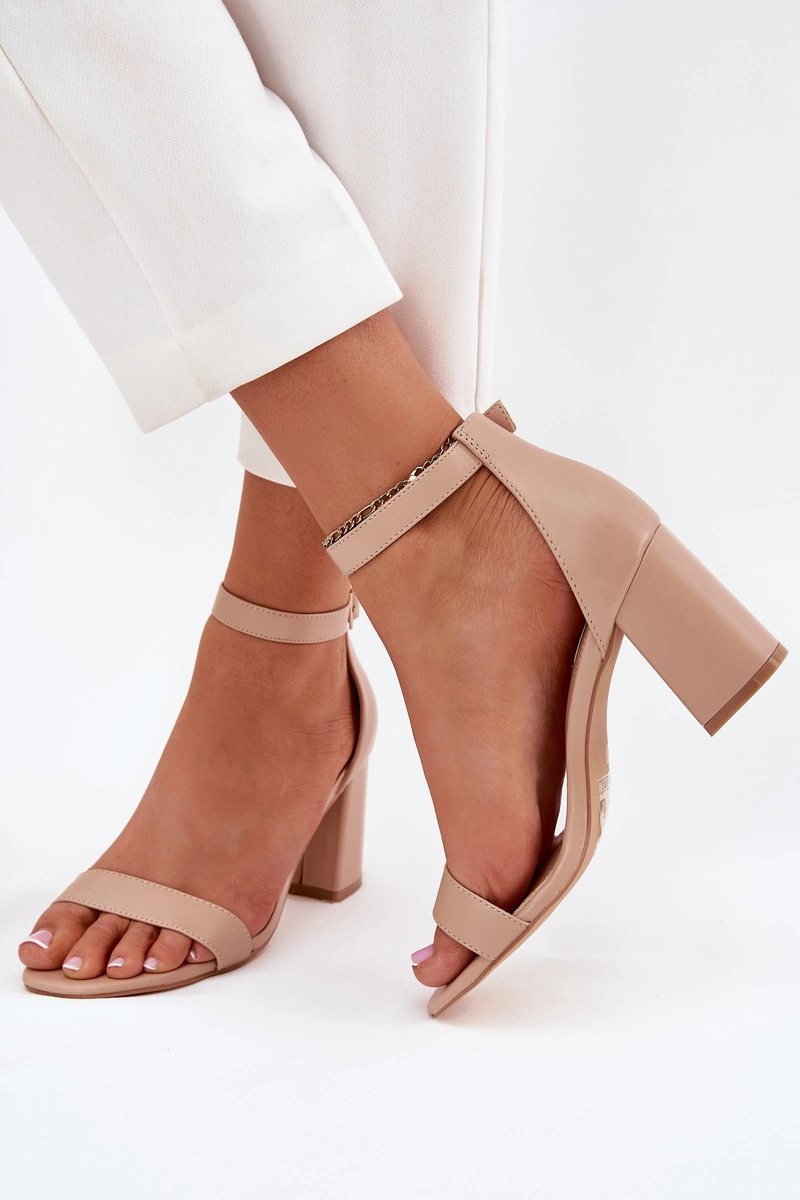 Eko Skórzane Sandały Damskie Na Słupku Beżowe Irini