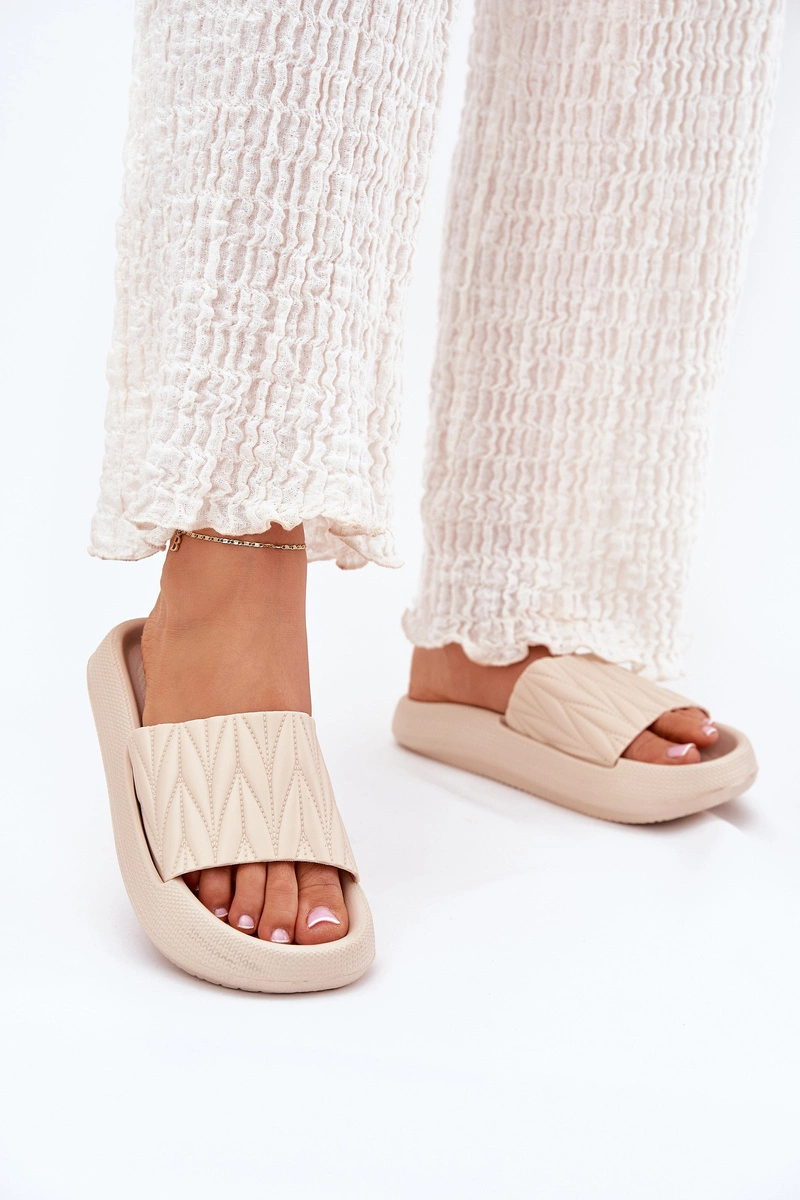 Klapki Damskie Piankowe Na Platformie Beżowe Vanesha