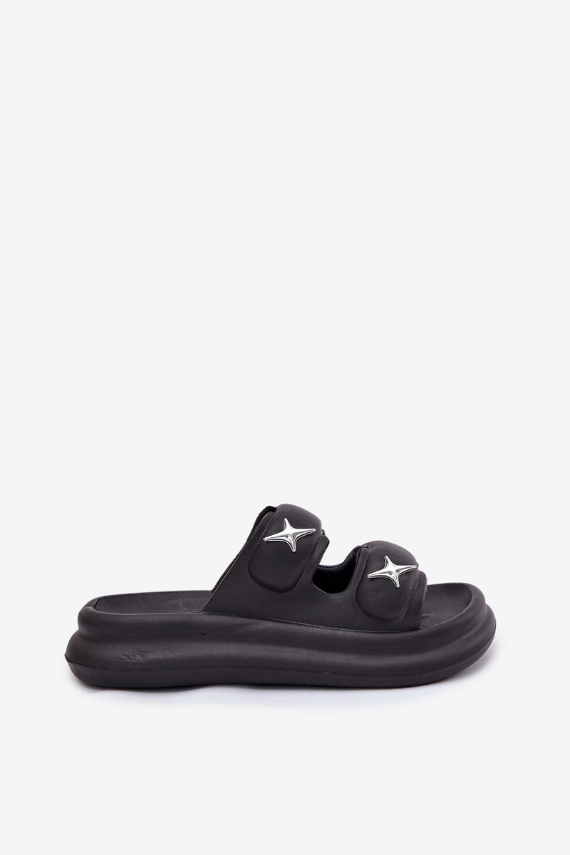 Piankowe Klapki Damskie Na Platformie Czarne Falowena