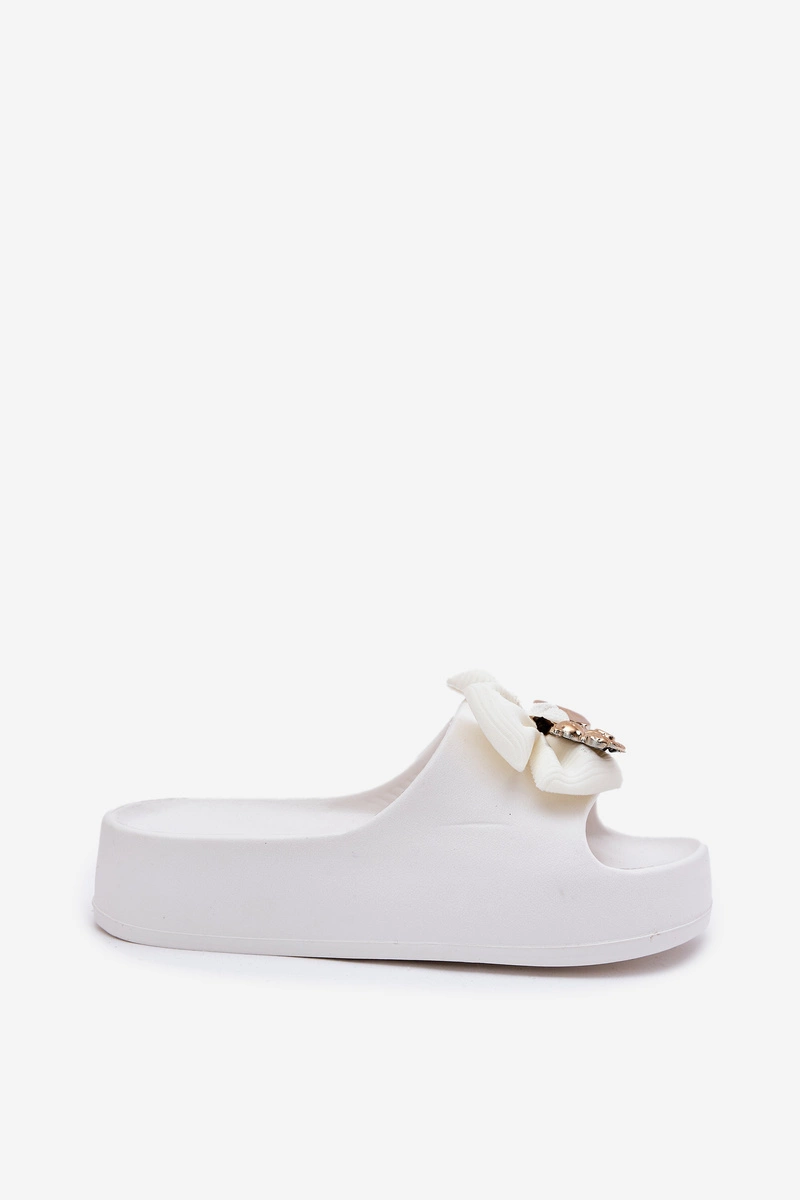 Klapki Damskie Piankowe Na Platformie Z Kokardką I Broszką Białe Marlize
