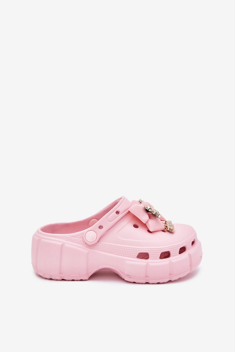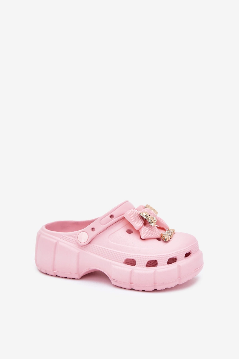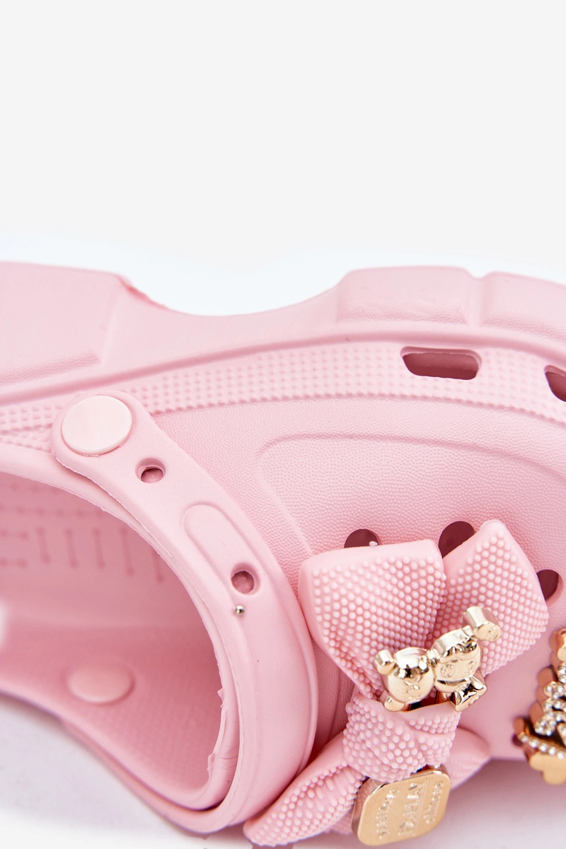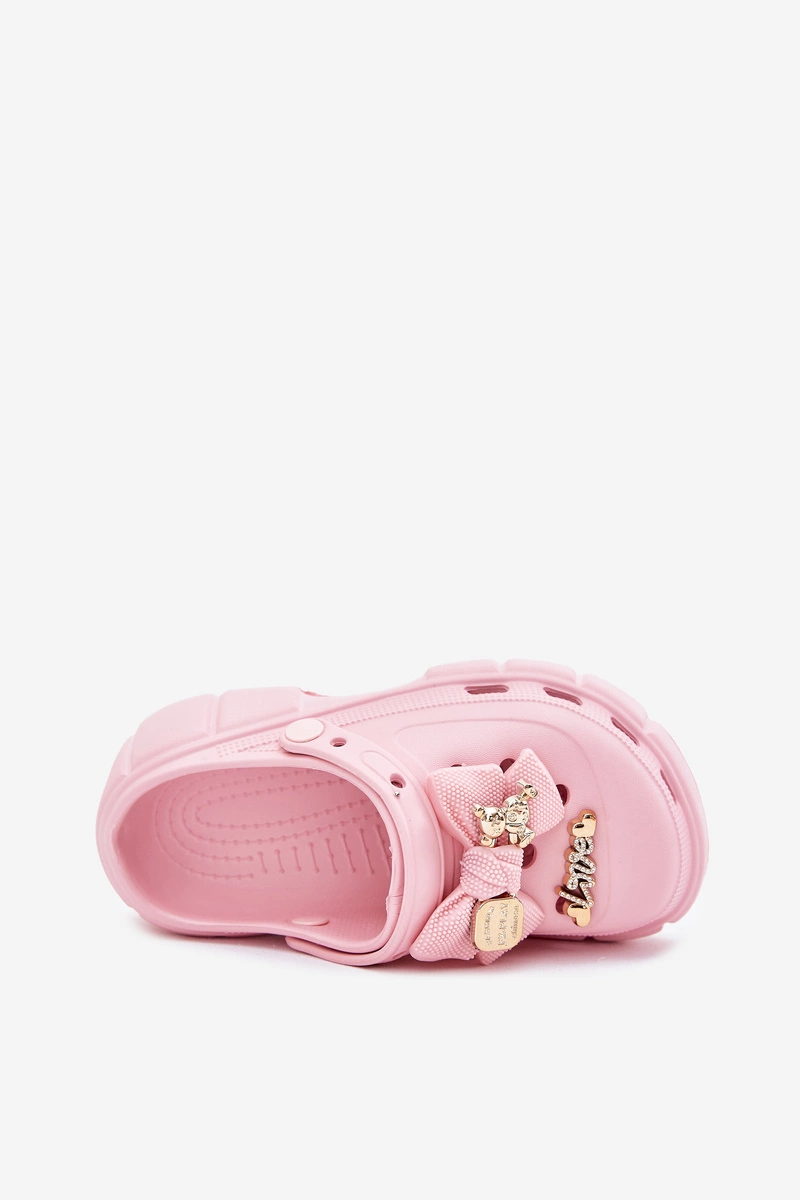Klapki Dziecięce Dziewczęce Piankowe Z Kokardką I Ozdobami Różowe Selvana