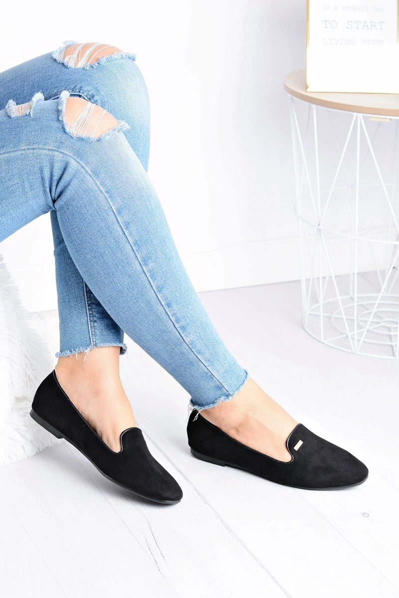 Baleriny Damskie Zamszowe Czarne Neala