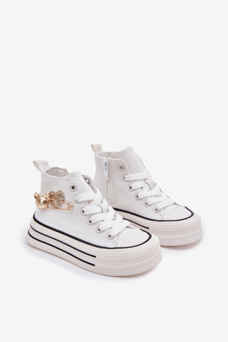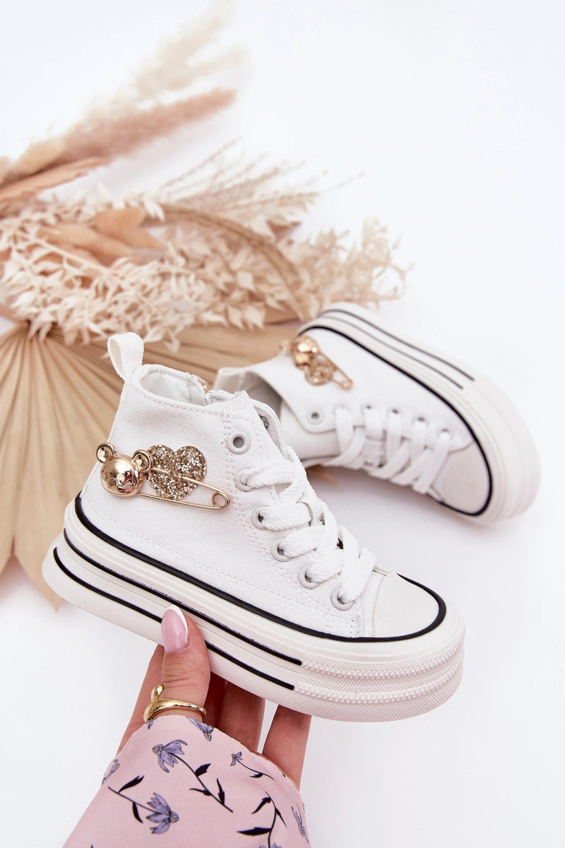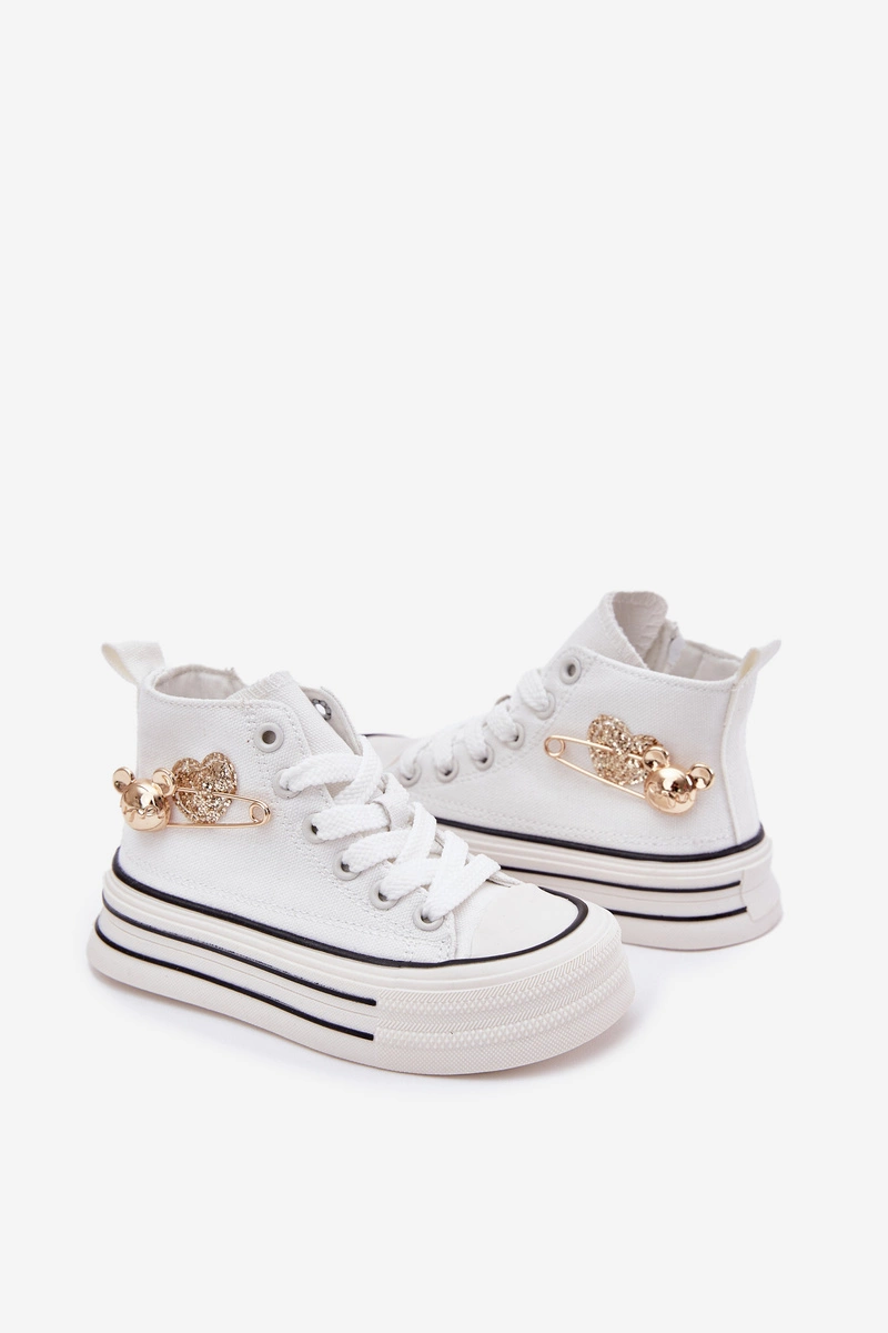 Trampki Dziecięce Wysokie Ze Złotą Ozdobą Białe Elvena