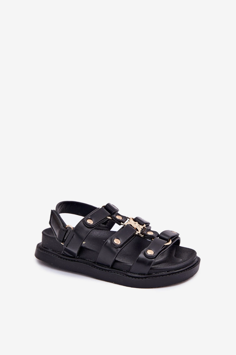 Dziewczęce Sandałki Ze Złotym Detalem Czarne Lunessa