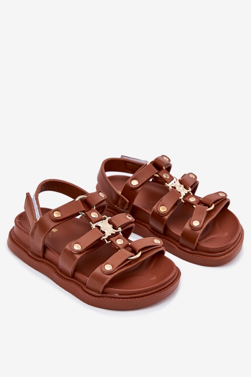 Dziewczęce Sandałki Ze Złotym Detalem Brązowe Lunessa