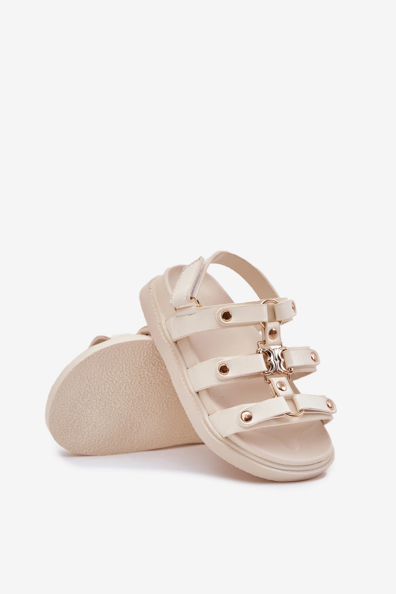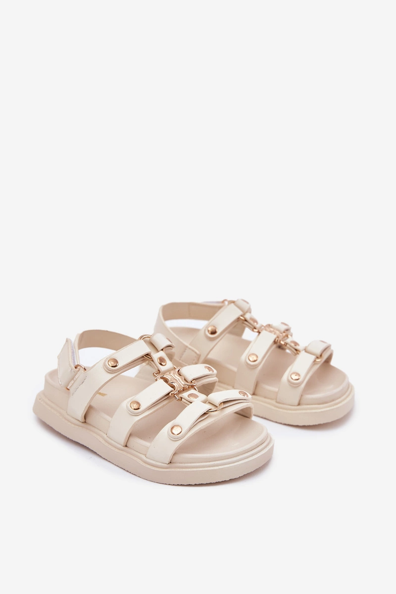 Dziewczęce Sandałki Ze Złotym Detalem Beżowe Lunessa