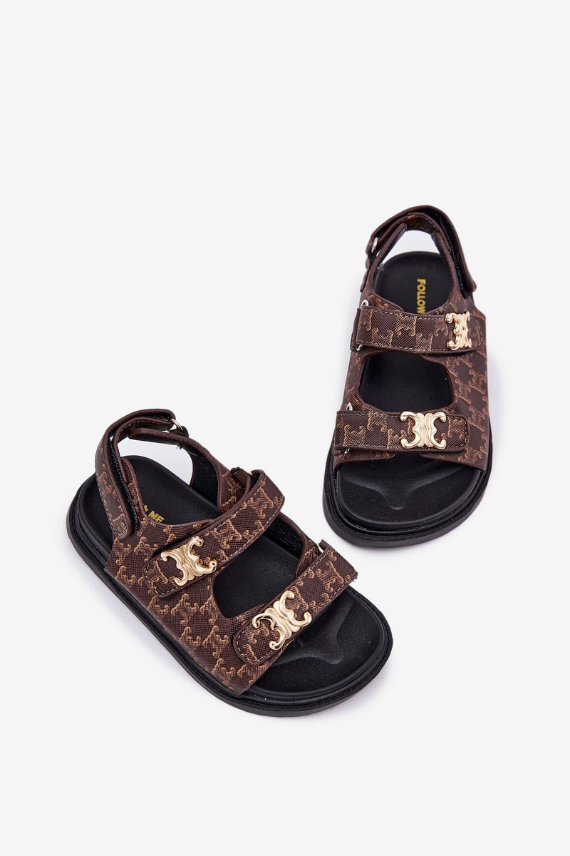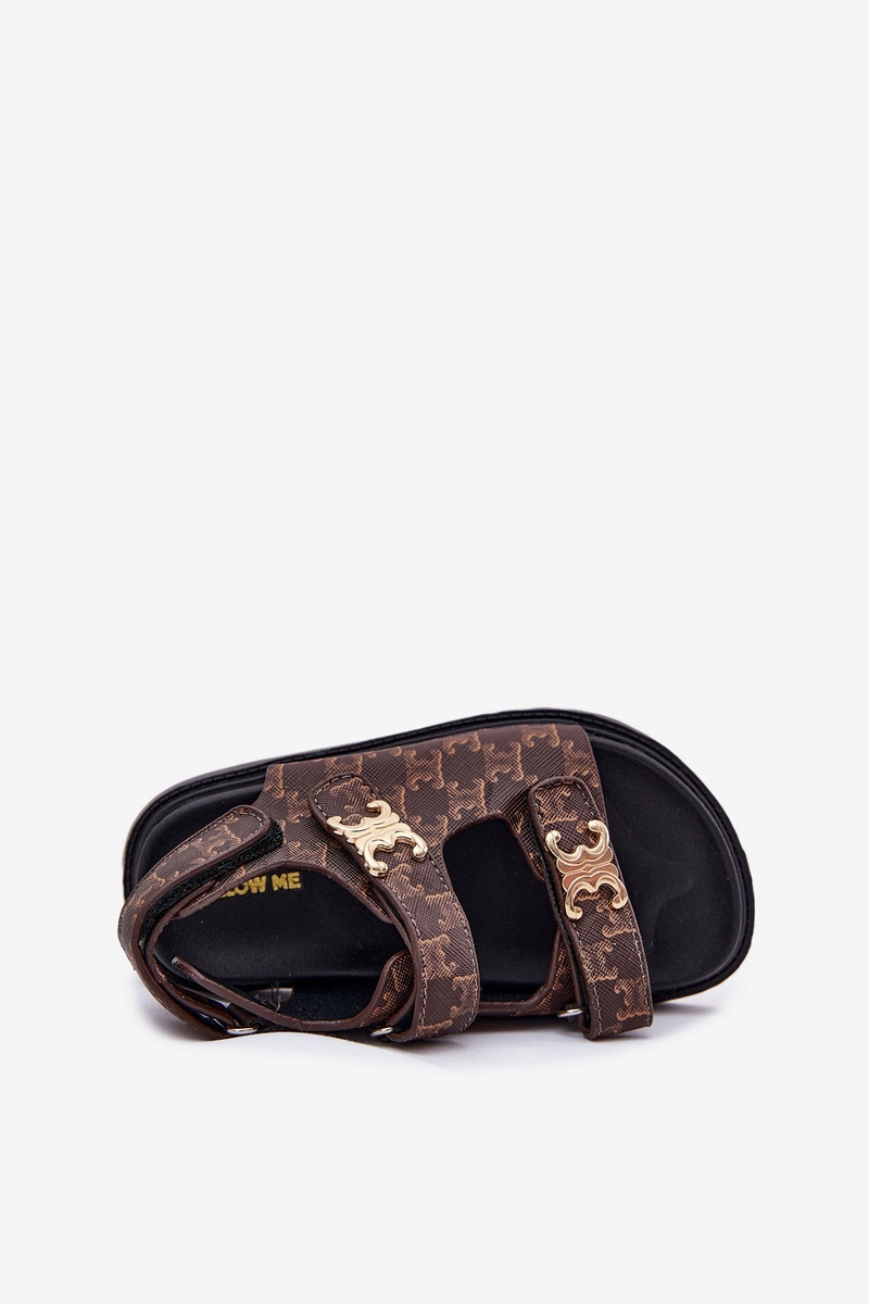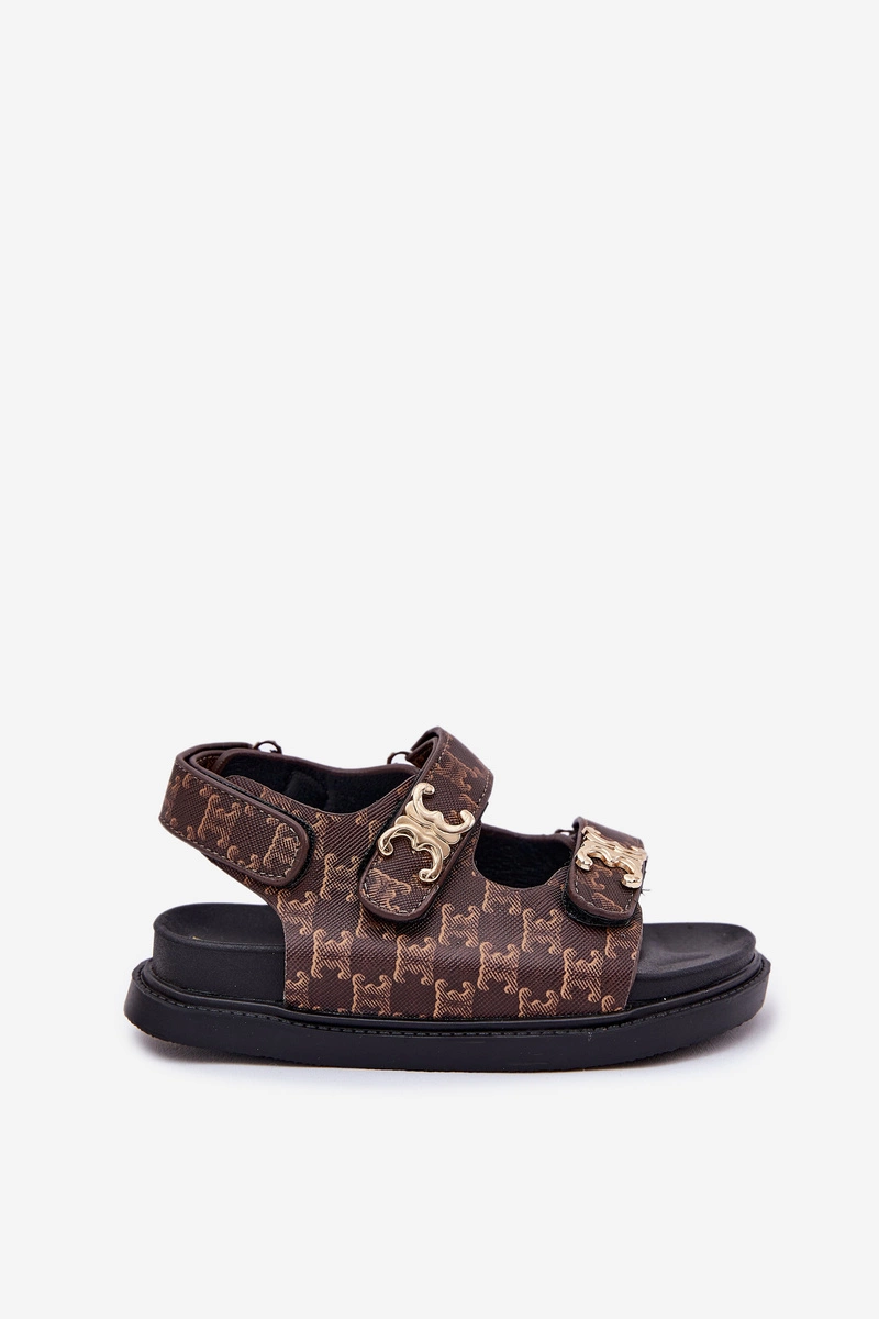 Dziecięce Sandałki Na Rzepy Ze Złotymi Detalami Brązowe Cavina