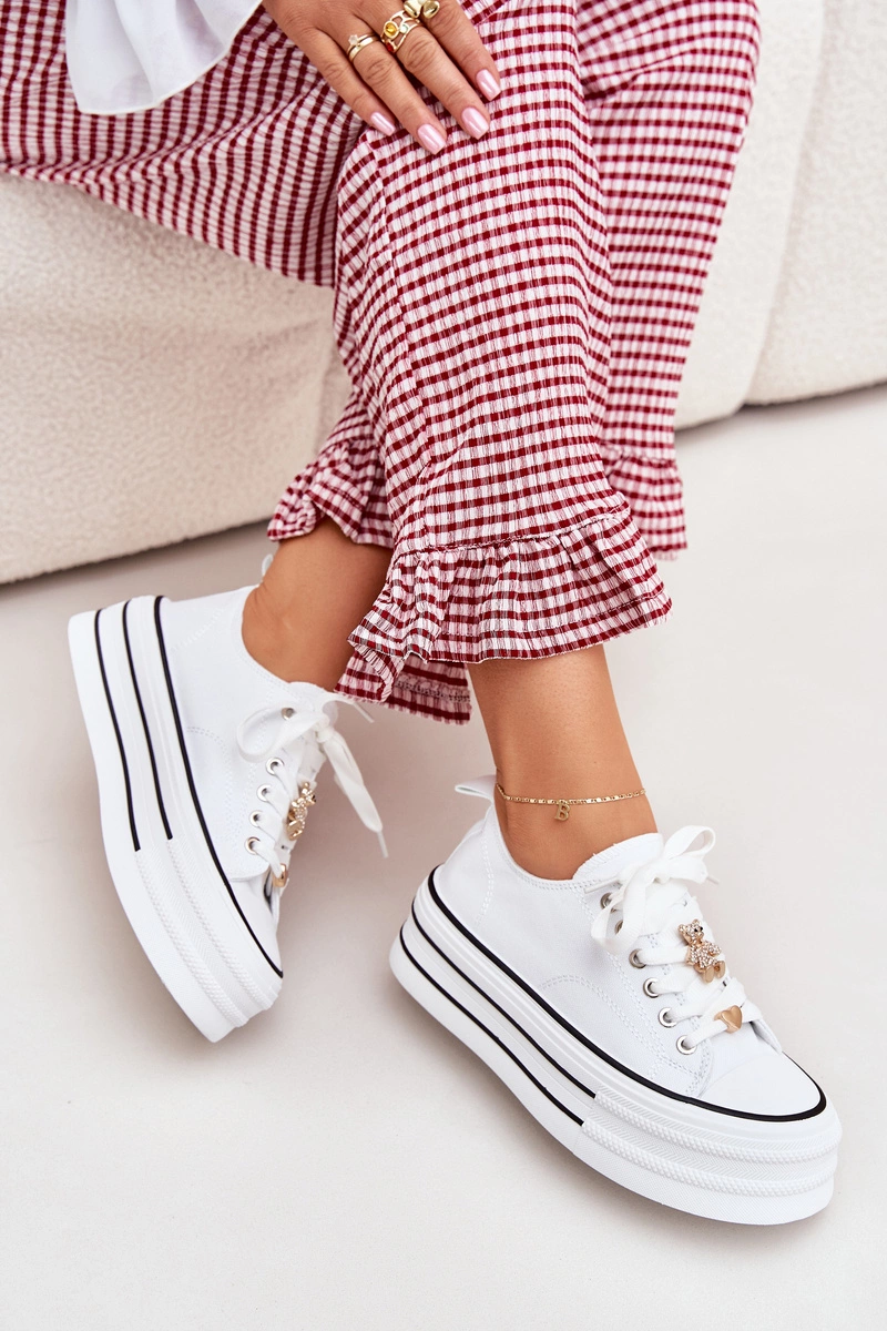 Trampki Damskie Na Platformie Ze Złotymi Przypinkami Białe Fiorina