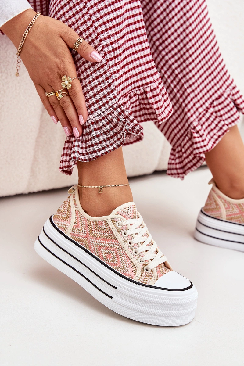 Niskie Trampki Damskie Na Platformie Różowe Melina