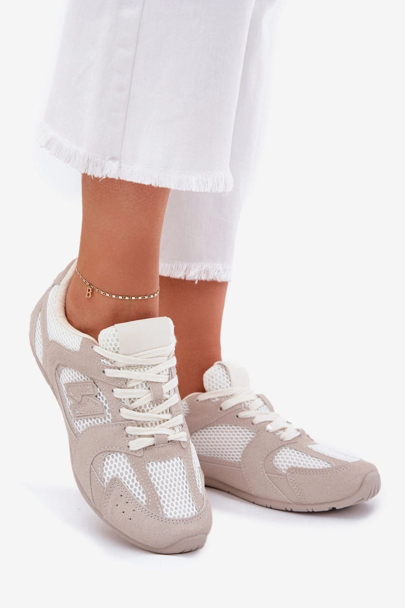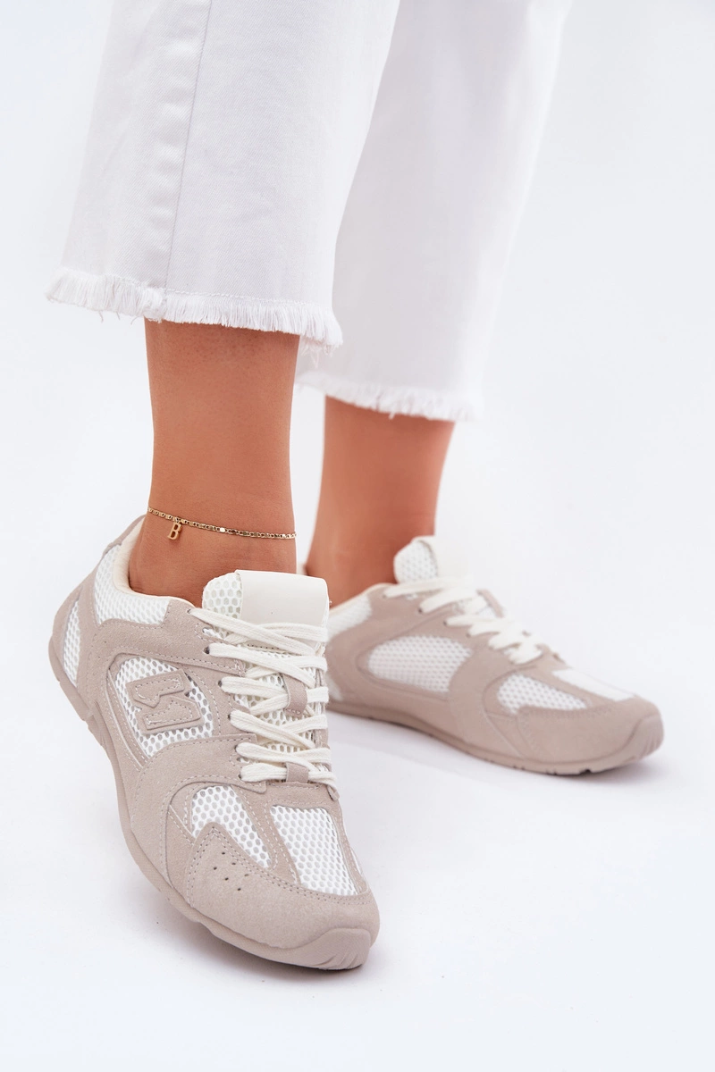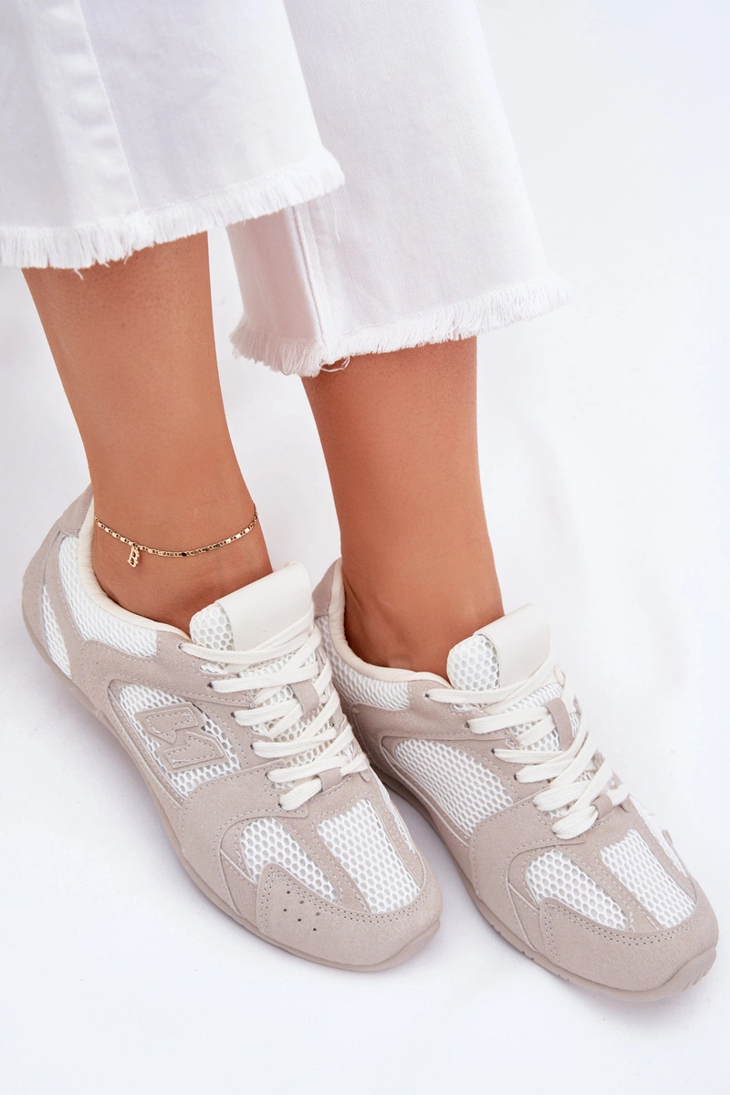 Buty Sportowe Damskie Z Eko Zamszu Biało-Beżowe Dorella