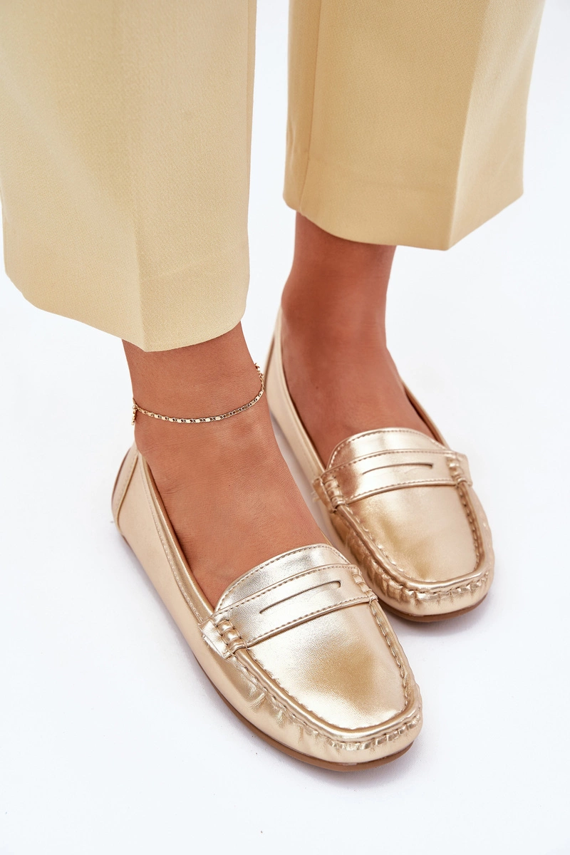 Damskie Eko Skórzane Mokasyny Złote Lenvie Kod produktu: 38100