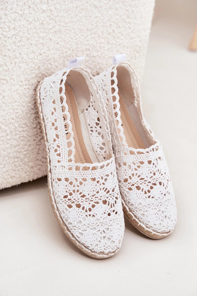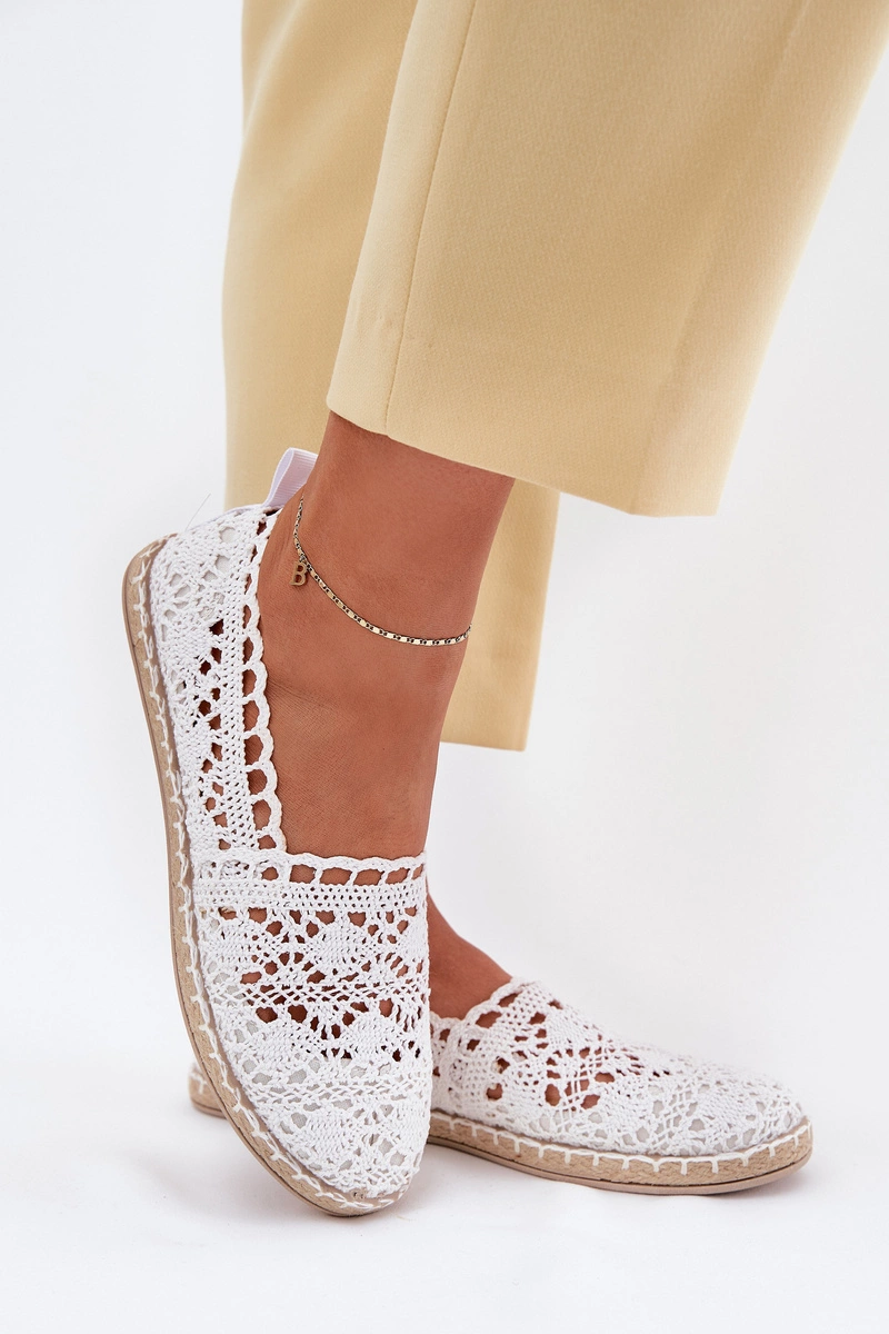 Koronkowe espadryle damskie. Wykonane z delikatnej koronki, idealnie komponują się z letnimi stylizacjami. Miękka eko skórzana wkładka zapewnia komfort przez cały dzień, a plecionka przy podeszwie dodaje im uroku i wakacyjnego charakteru. Doskonałe na codzienne wyjścia, spacery czy wakacyjne wyjazdy. Przy wyborze rozmiaru prosimy sugerować się tabelą rozmiarów.