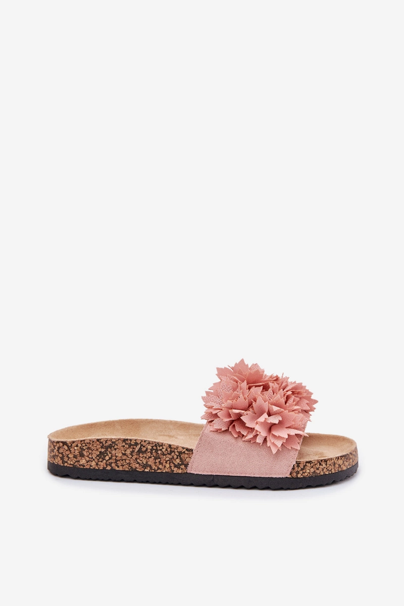Klapki Damskie Na Korkowej Podeszwie Z Kwiatkami Różowe Ferenza