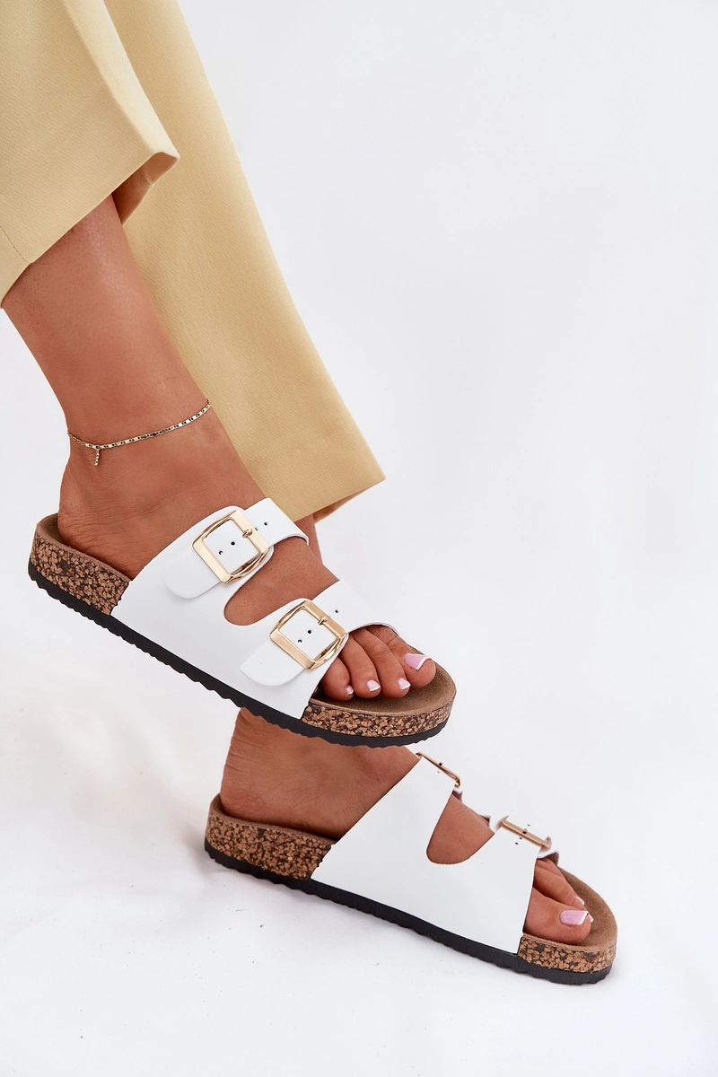Klapki Damskie Z Klamrami Z Eko Skóry Białe Iskira
