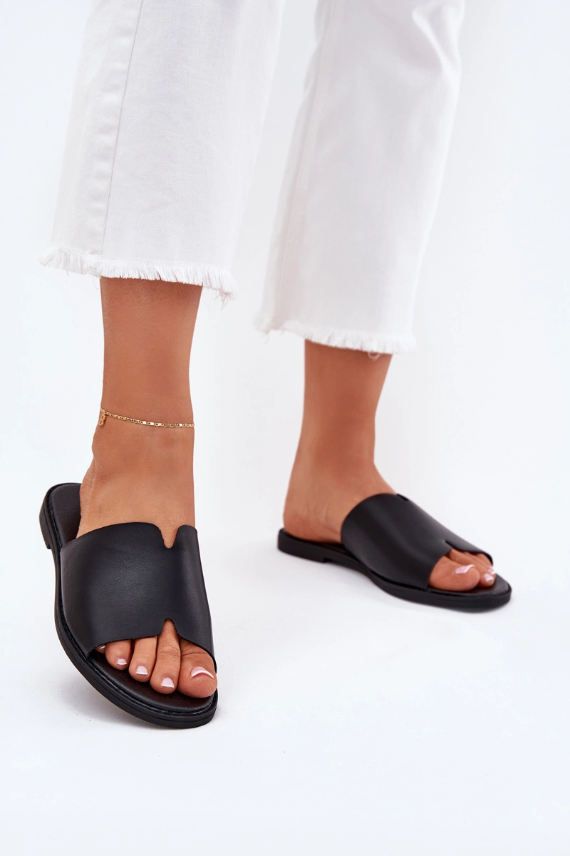 Klapki Damskie Z Eko Skóry Na Płaskim Obcasie Czarne Kalimira