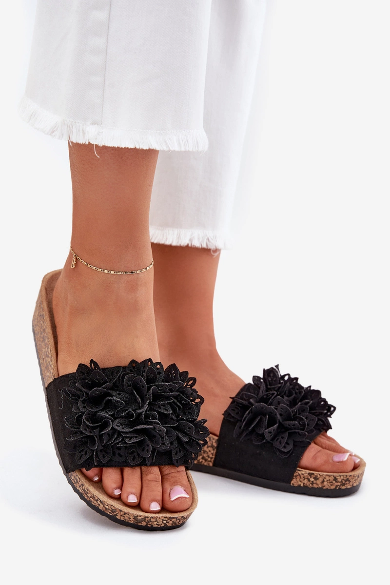 Klapki Damskie Na Korkowej Platformie Czarne Elirna