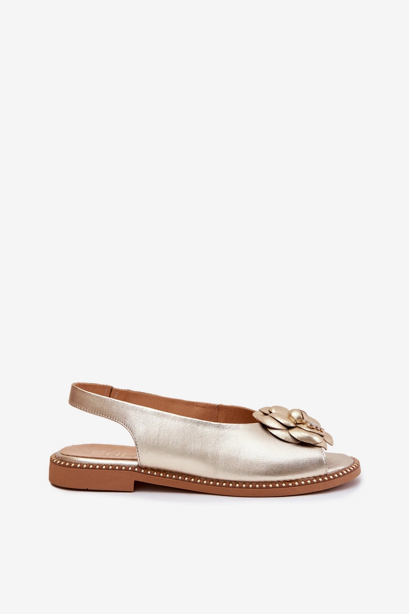 Skórzane Płaskie Sandały Z Ozdobą CheBello 4642 Złote