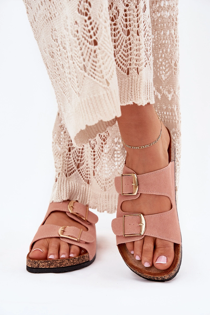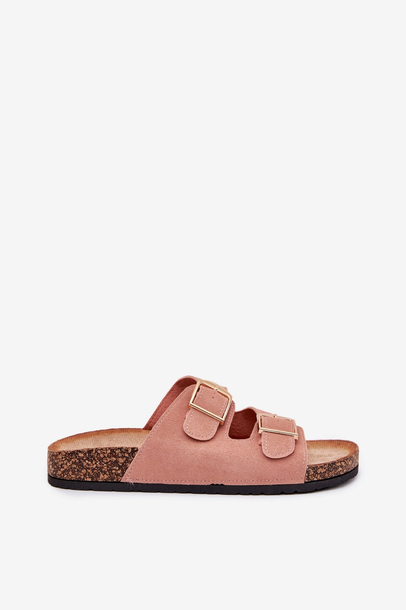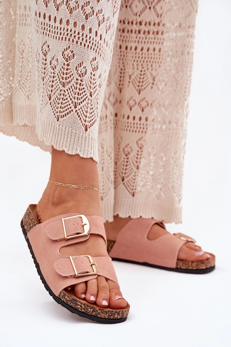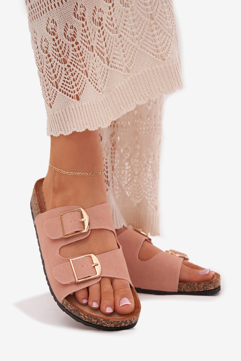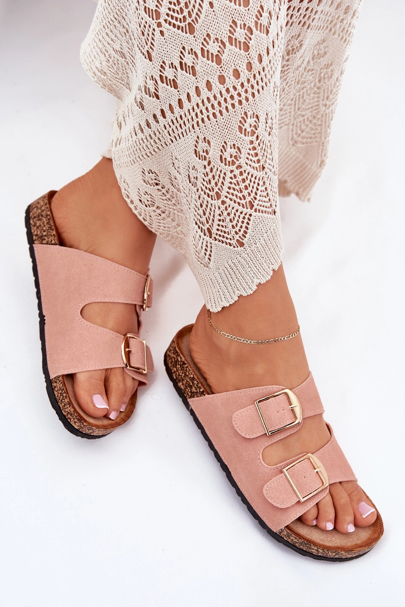 Stylowe klapki damskie na korkowej platformie, które łączą wygodę z modnym wyglądem. Z przodu znajdują się dwa paski z klamrami, które zapewniają idealne dopasowanie. Profilowana eko zamszowa wkładka gwarantuje komfort przez cały dzień. Te klapki będą doskonałym wyborem na letnie dni, świetnie komponując się z sukienkami, spódnicami i spodniami. Przy wyborze rozmiaru prosimy sugerować się tabelą rozmiarów.