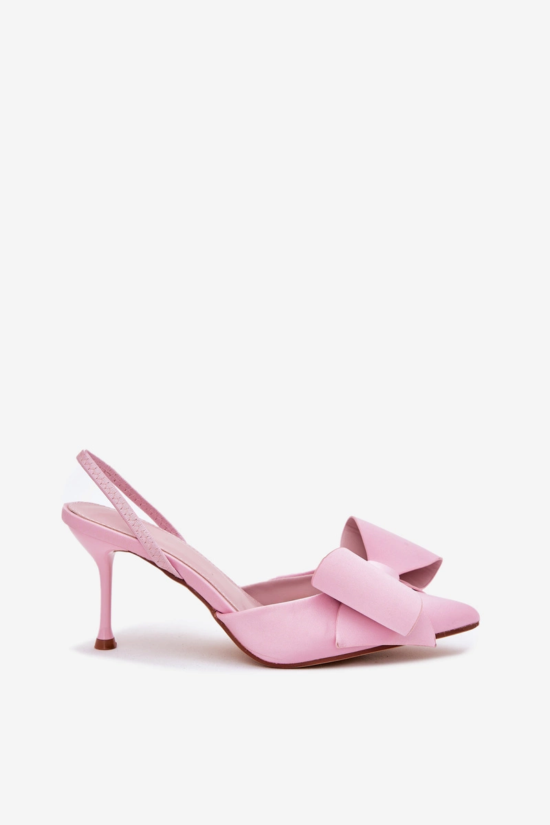Szpilki Z Odkrytymi Piętami I Kokardką Różowe Eklevia