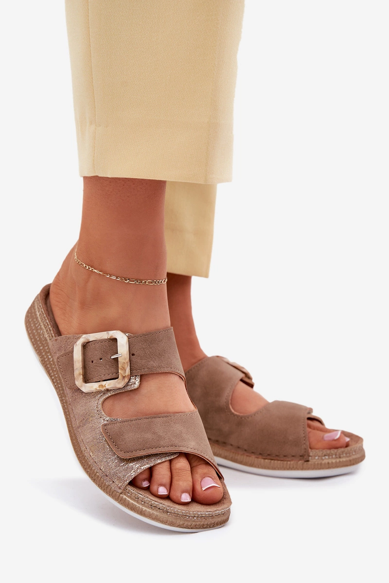 Klapki Damskie Z Klamrą I Rzepem INBLU MK000013 Brązowe