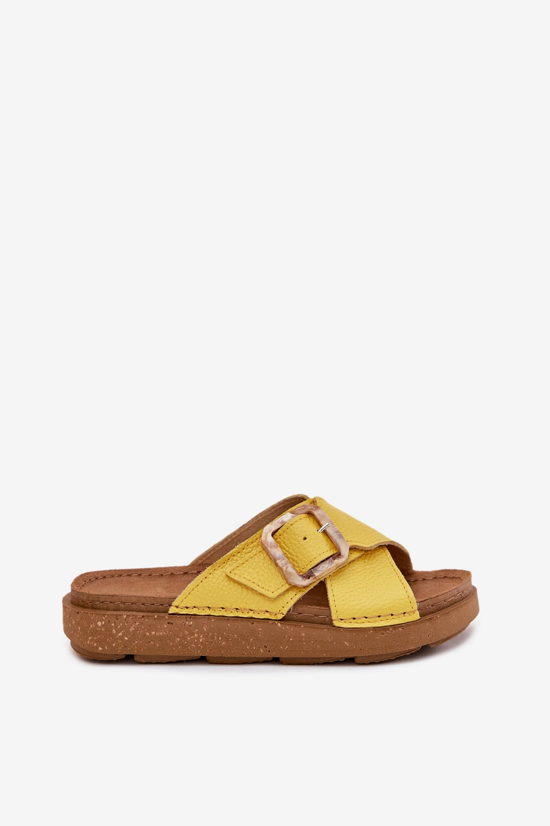 Skórzane Klapki Damskie Z Klamrą Inblu ED0003IU Żółte