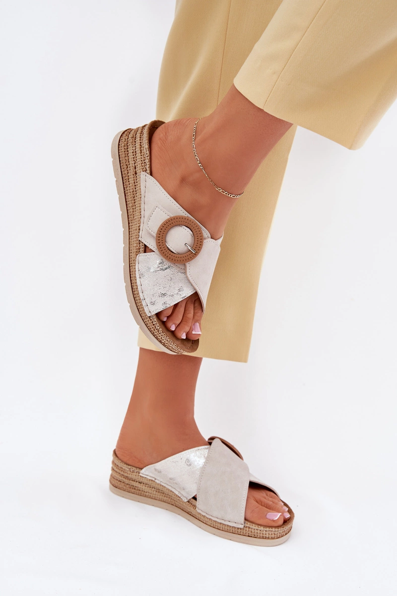 Klapki Damskie Na Koturnie Z Ozdobną Klamrą Inblu RV000012 Jasnobeżowe