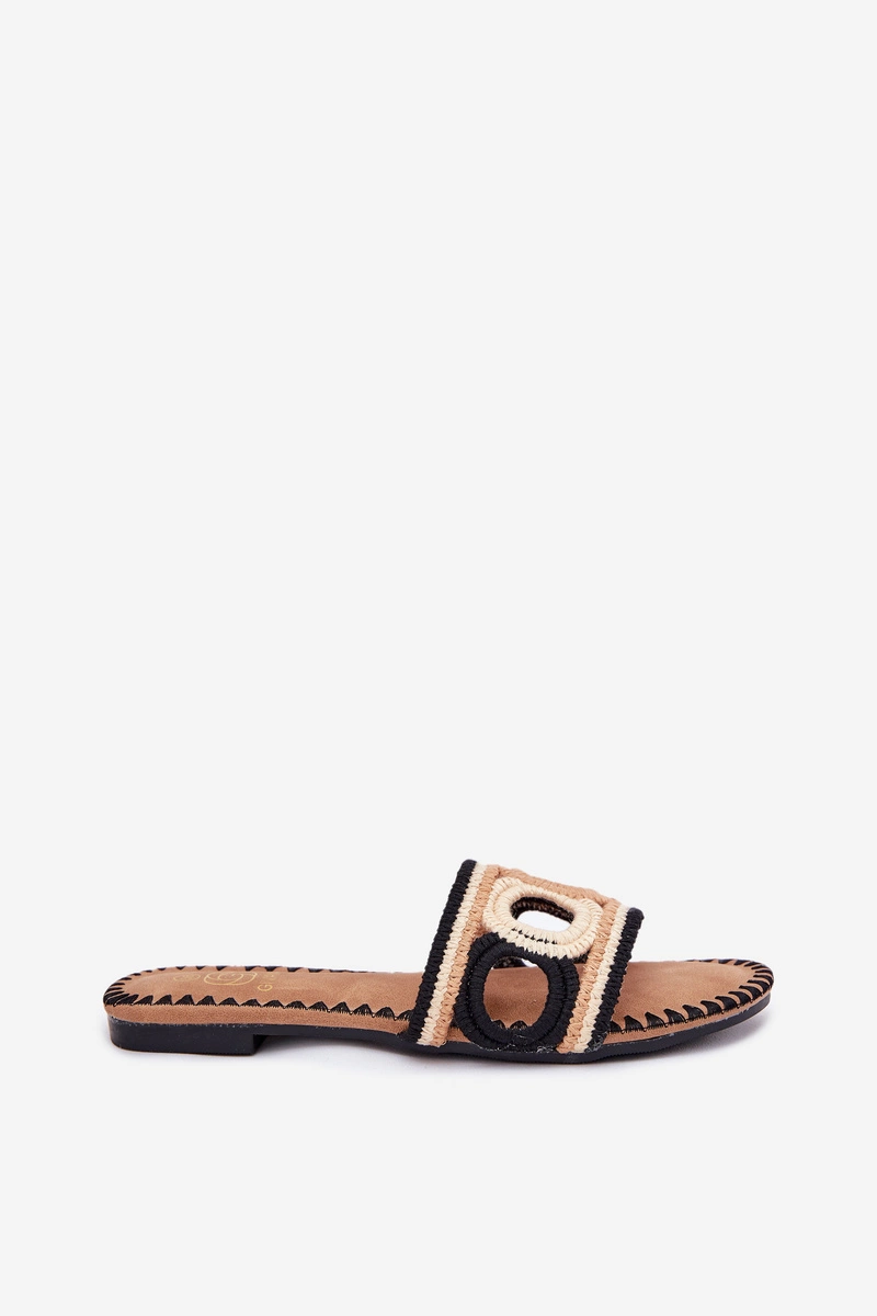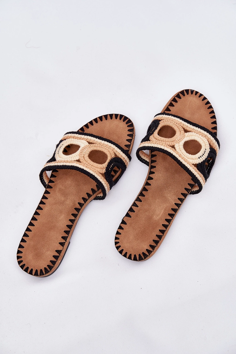 Szydełkowe Klapki Damskie Na Płaskim Obcasie Czarne Nirina