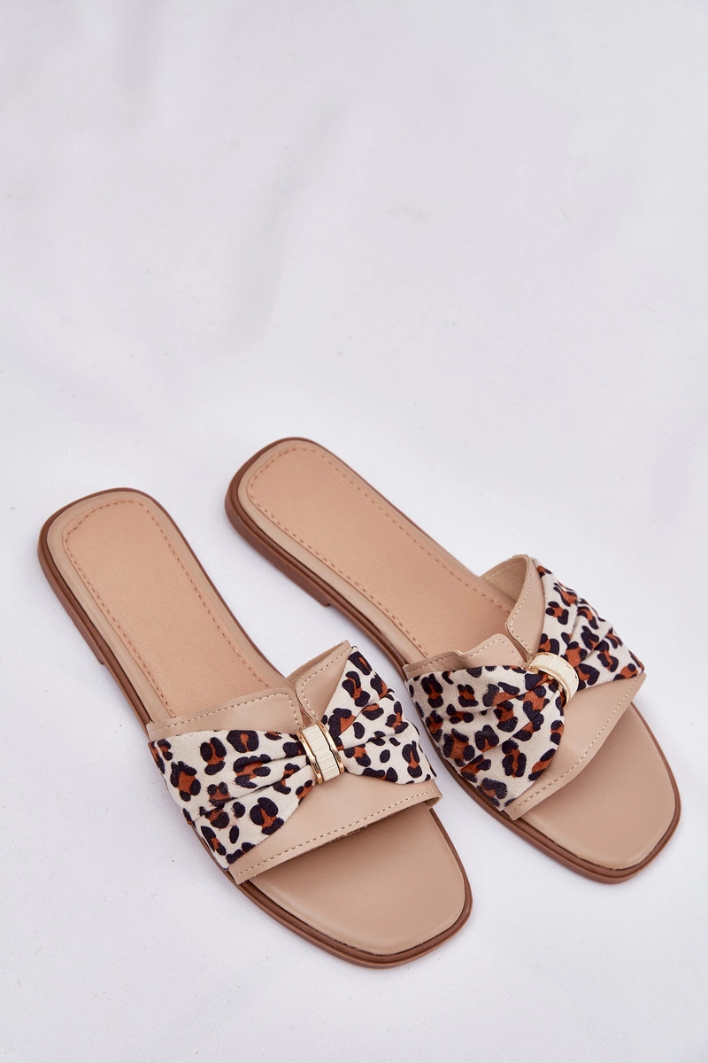 Klapki Damskie Na Płaskim Obcasie Z Kokardą Beżowe Avenza