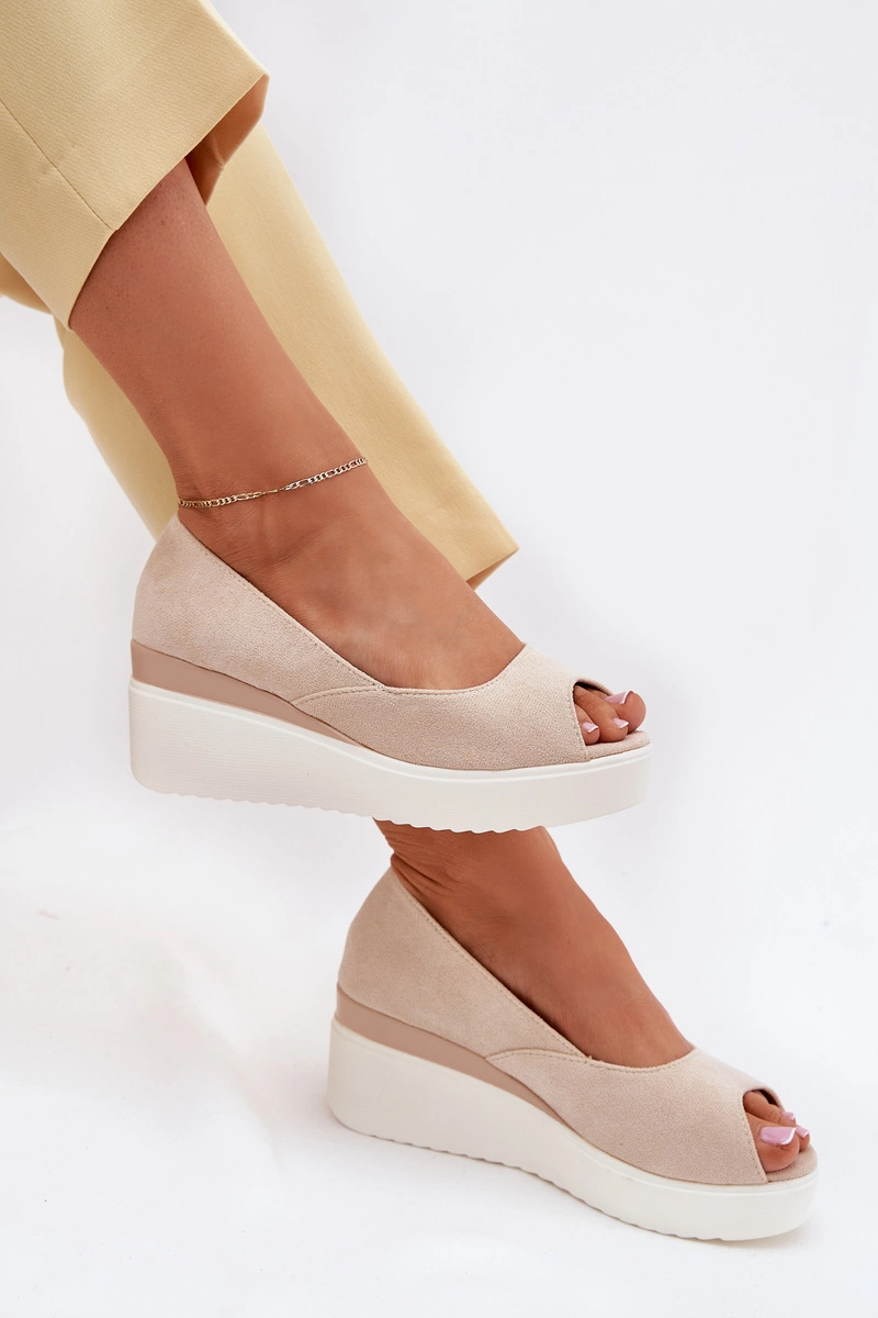 Sandały Damskie Na Koturnie Z Eko Zamszu Jasnobeżowe Velira