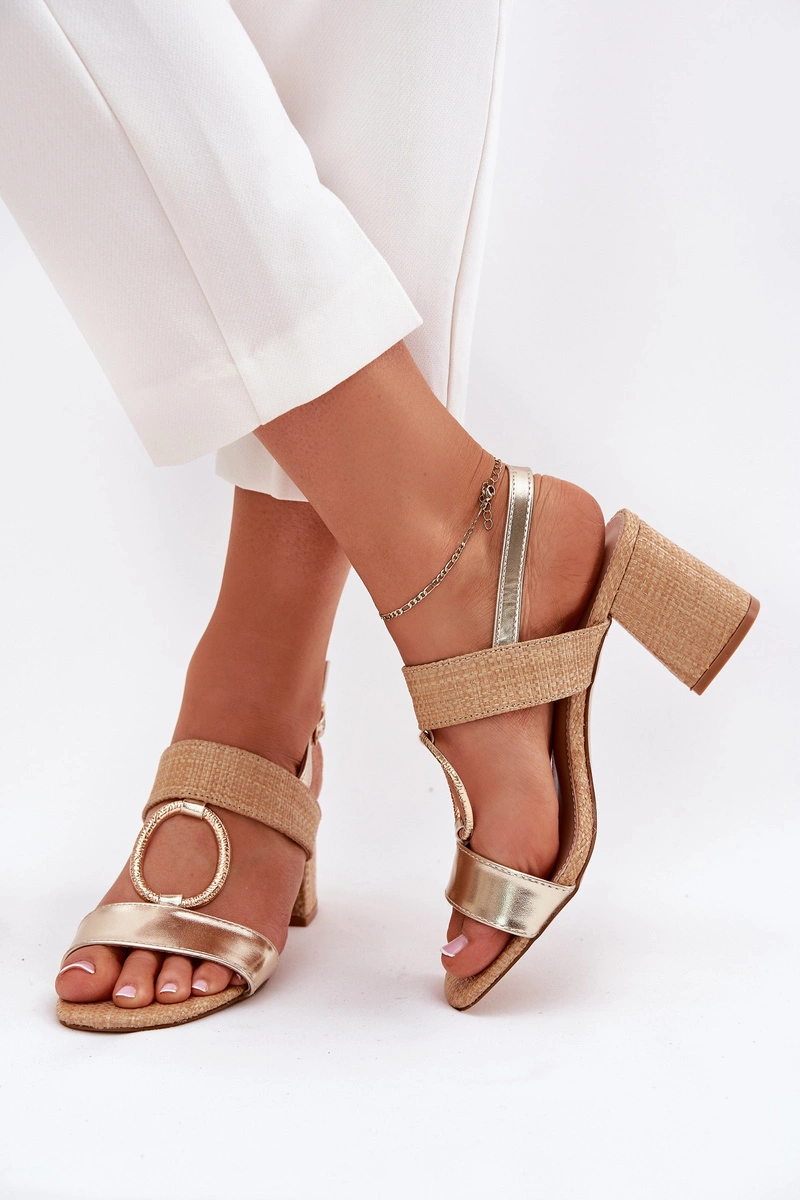 Sandały Na Słupkowym Obcasie Złote Afleeria
