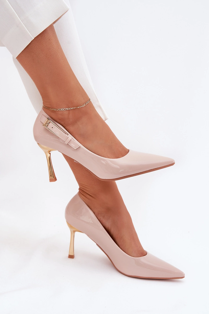 Szpilki damskie z eko skóry to połączenie stylu, elegancji i nowoczesnego wyglądu. Dzięki szpiczastym noskom buty optycznie wydłużają i wysmuklają nogi, dodając sylwetce smukłości i elegancji. Złoty obcas przyciąga wzrok, wprowadzając subtelną nutę luksusu, natomiast złota klamra stanowi elegancki detal, który podkreśla wyrafinowany charakter obuwia. Idealnie komponują się z wieczorowymi sukienkami, a także eleganckimi zestawami do pracy czy na wyjątkowe okazje. Przy wyborze rozmiaru prosimy sugerować się tabelą rozmiarów.