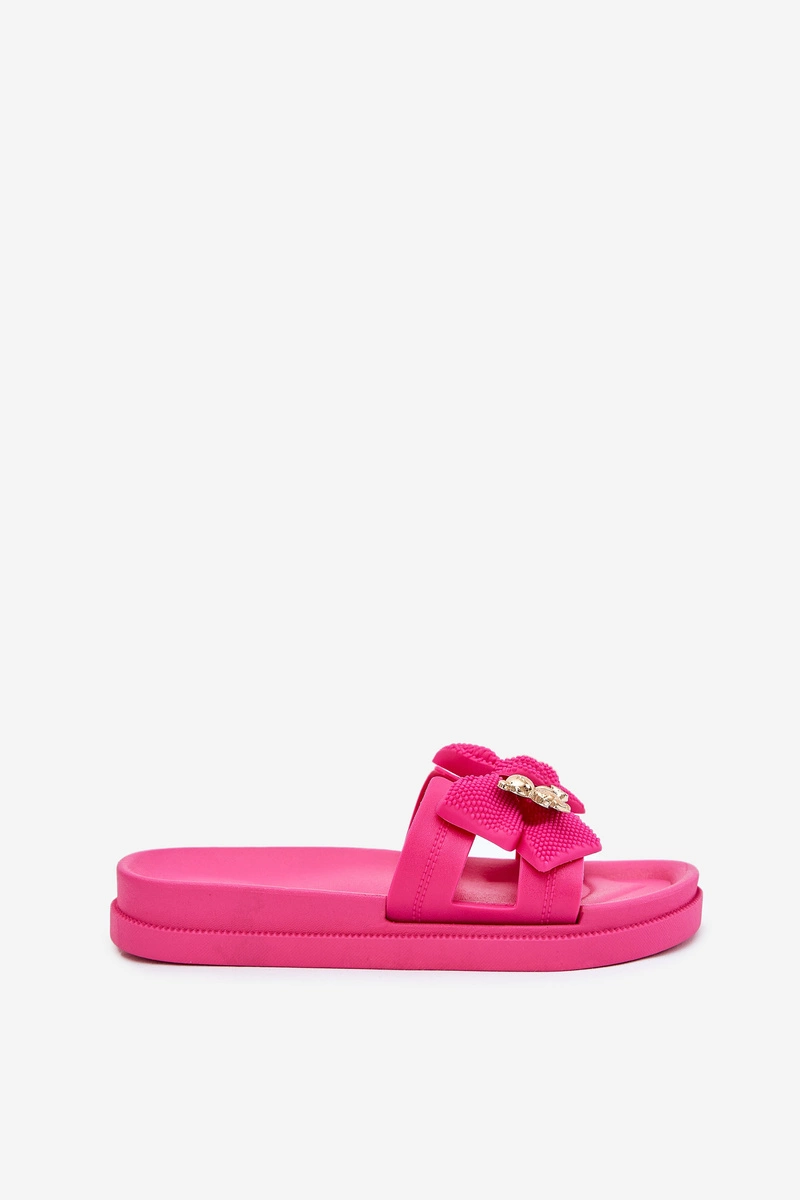 Klapki Damskie Z Kokardą I Złotą Broszką Fuksja Lynara