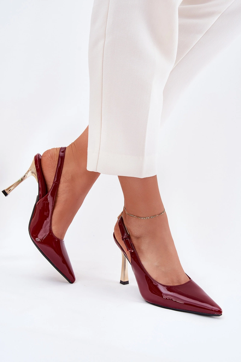 Lakierowane Szpilki Z Odkrytą Piętą I Szpiczastymi Noskami Bordowe Rivori