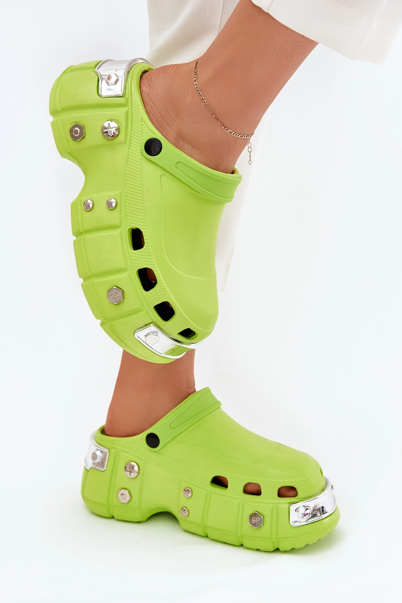 Klapki Damskie Na Masywnej Platformie Limonkowe Korina