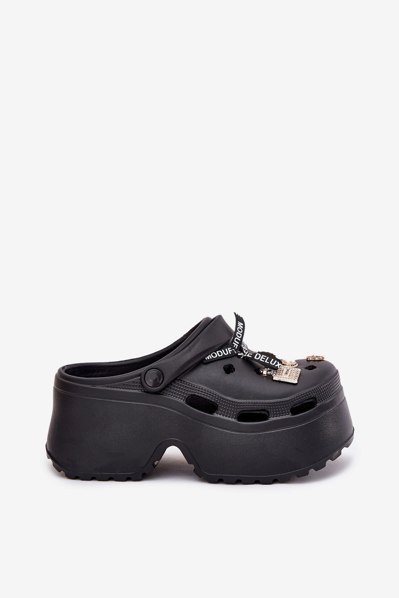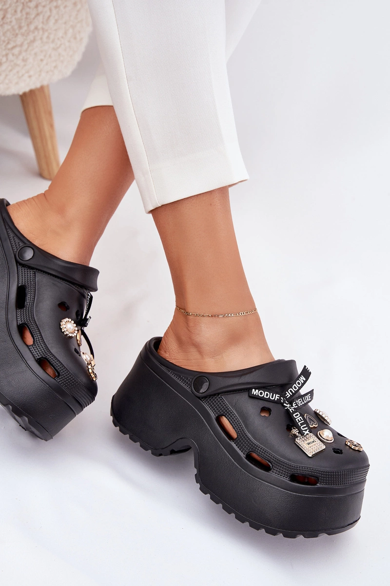 Klapki Damskie Na Masywnej Platformie Z Przypinkami Czarne Vivira