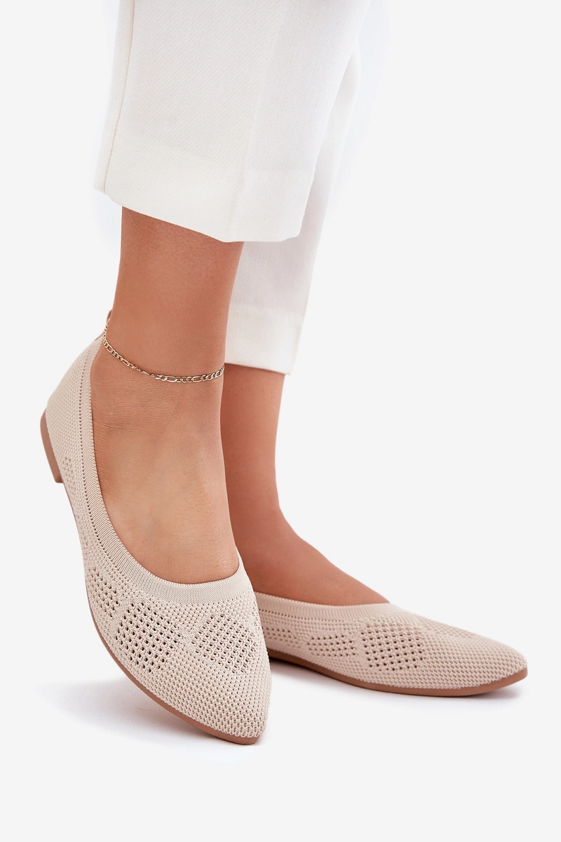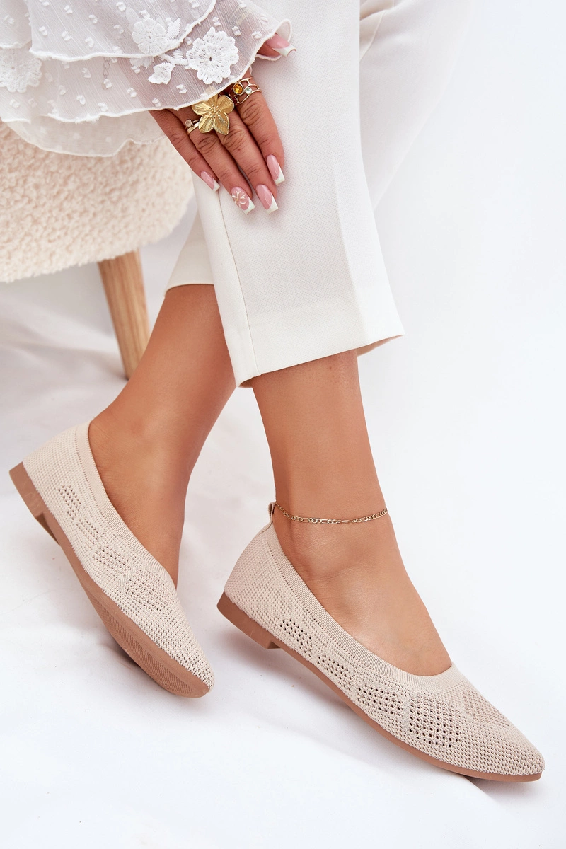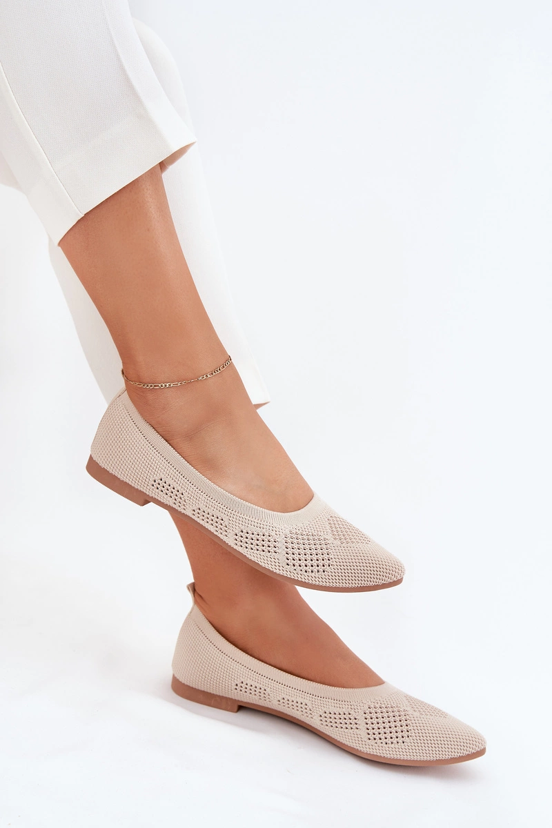 Materiałowe Baleriny Damskie Beżowe Zelira