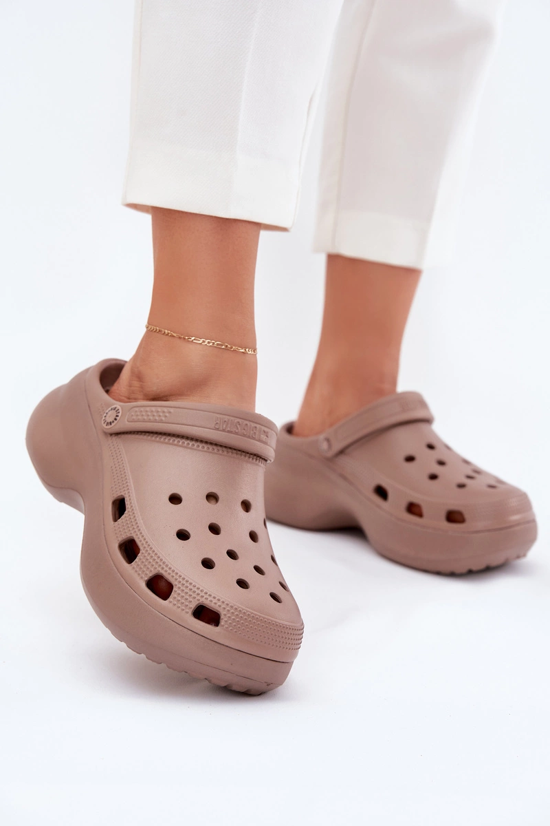 Piankowe Klapki Damskie Na Masywnej Podeszwie Big Star RR274A121 Ciemnobeżowe
