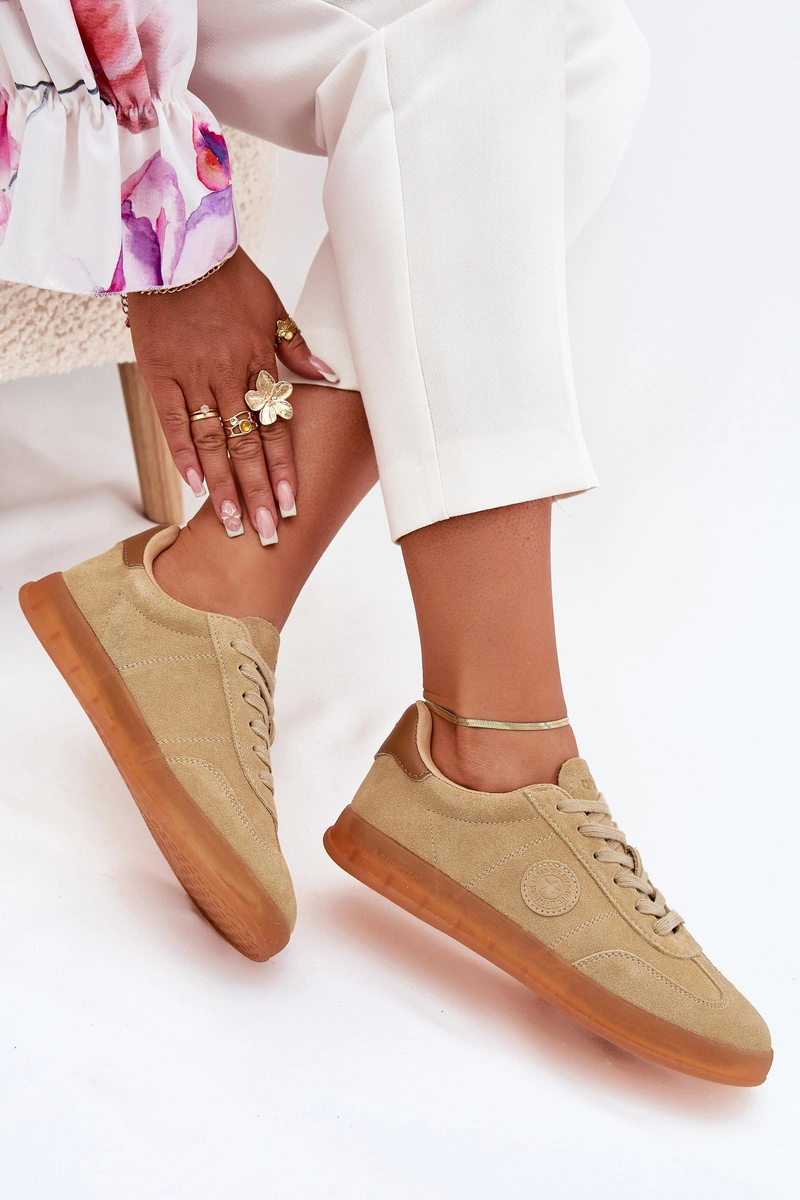 Zamszowe Sneakersy Damskie Big Star RR274849 HI-POLY SYSTEM Beżowe