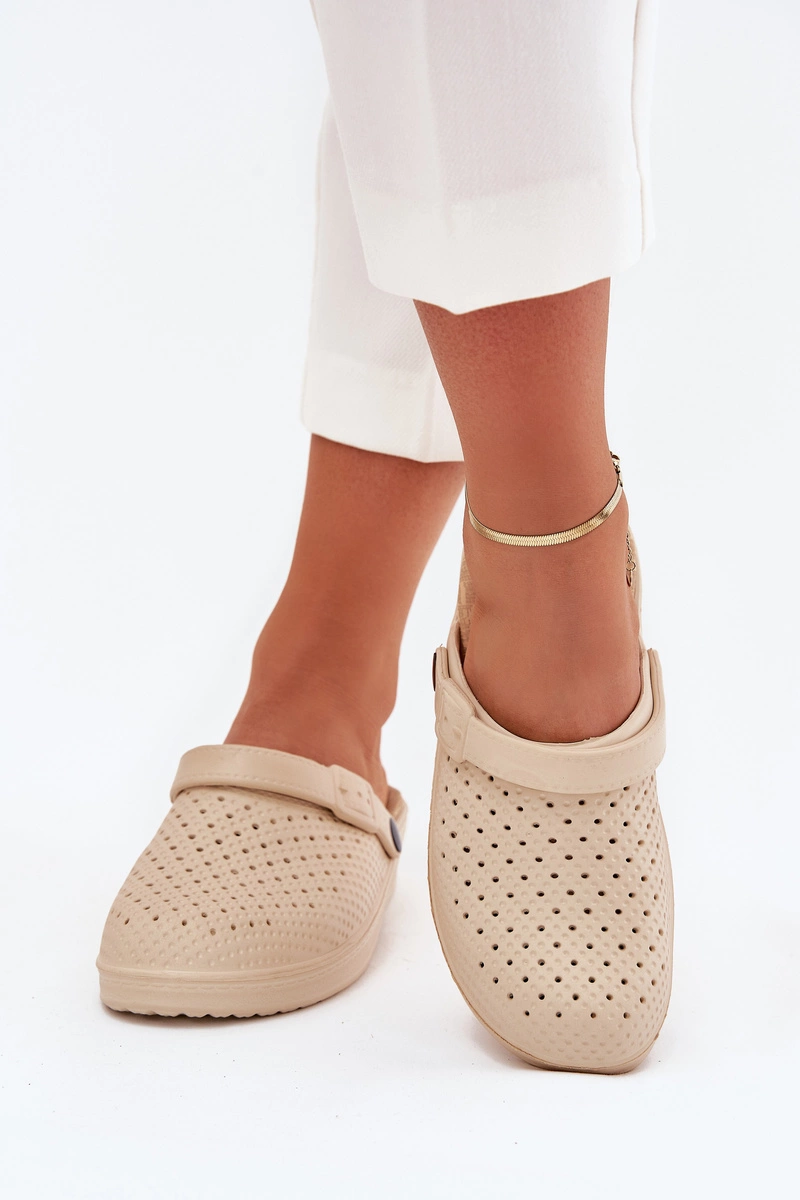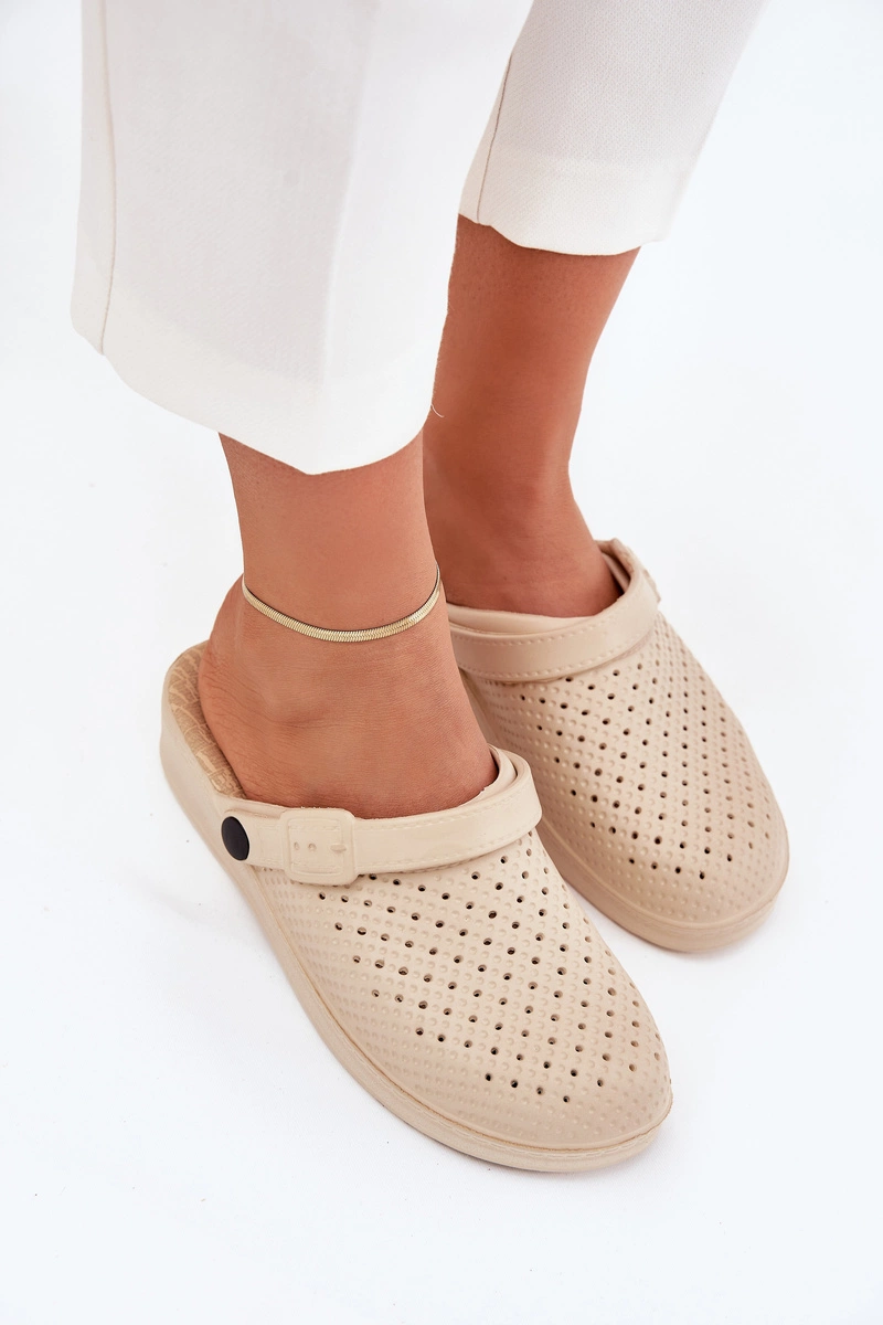 Piankowe Klapki Chodaki Damskie Beżowe Faylina